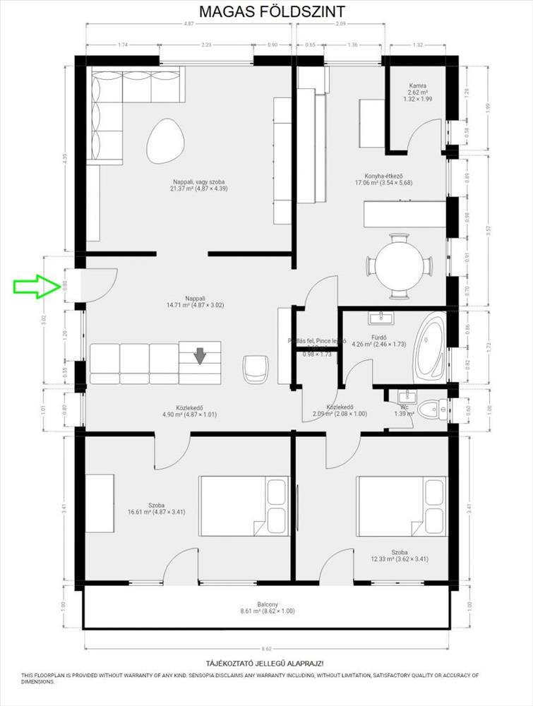 A lakóház jelenleg is alkalmas egy közepes méretű (4-5 fős9 család kényelmes életéhez. Viszont a padlástér beépítése által akár nagyobb családnak is ideális.