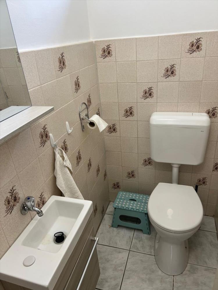 A sarokkáddal ellátott fürdőtől külön helyiségben található a wc.