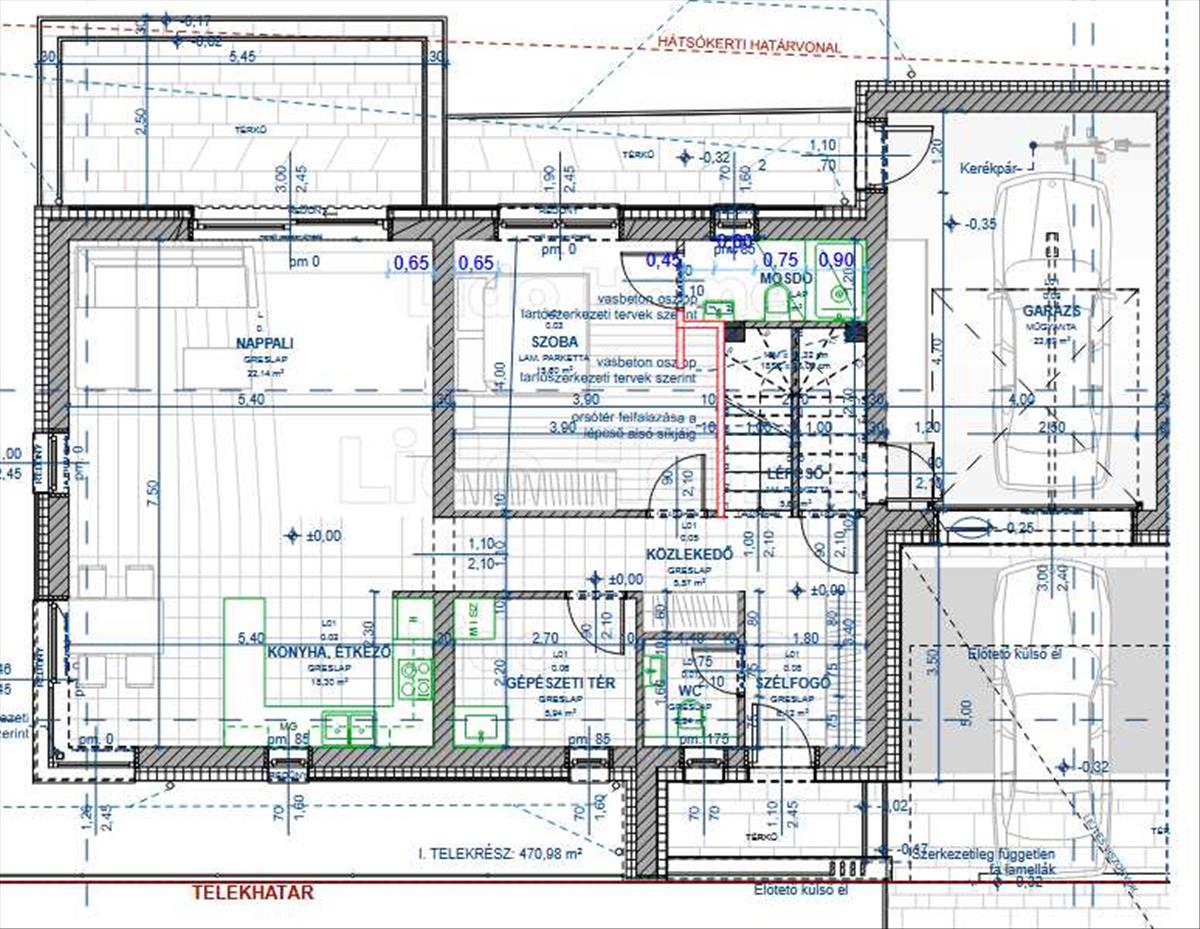-23, 6 m² garázs, elektromos kapuval, a házzal egybeépítve