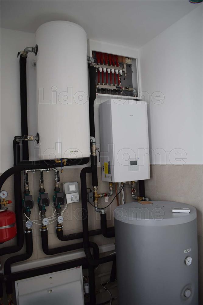 -hőszivattyús rendszer padlófűtéssel és törölközőszárítós radiátorokkal