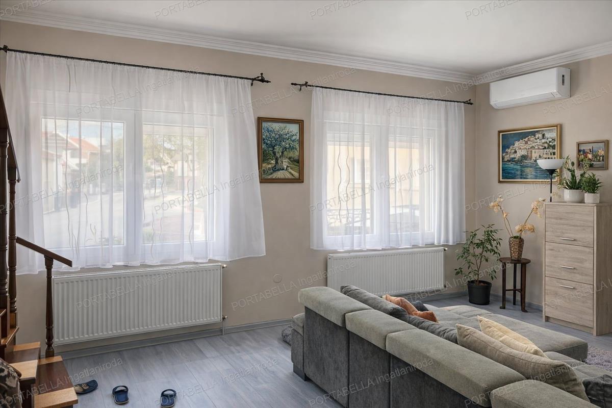 Pápa egyik csendes, zöldövezeti részén kínálunk megvételre egy önálló, tégla építésű, kétszintes családi házat, amely ideális választás mindazok számára, akik nyugodt környezetben, mégis kényelmes élettérben szeretnének élni. a 116 m²-es ingatlan masszív szerkezettel rendelkezik: 45 cm-es falazattal és vasbeton födémmel épült, így hosszú távon is stabil, értékálló otthont biztosít. a ház 1980-ban épült, majd 2025-ben felújításon esett át, ennek köszönhetően a klasszikus építési minőség korszerűbb megoldásokkal párosul. a belső tér két szinten helyezkedik el, praktikus kialakításának köszönhetően kiválóan alkalmas családi életre. a beépíthető tetőtér további lehetőségeket rejt magában, így az ingatlan igény szerint tovább bővíthető, személyre szabható. a komfortérzetet három darab hűtő-fűtő split klíma biztosítja, amelyek a hálószobákban kerültek elhelyezésre. Emellett a ház gázfűtéssel rendelkezik, amely három éve teljesen megújult, korszerű immergas gázkazánnal működik. Az ingatlan teljes közműellátottsággal rendelkezik: víz, villany (3×16a), gáz és csatorna egyaránt rendelkezésre áll. Az internet- és televíziószolgáltatás szintén biztosított. Az udvar egyik különlegessége egy különálló melléképület, amely számos lehetőséget kínál: irodának, üzlethelyiségnek, szépségszalonnak vagy akár egyéb vállalkozási célra is kiválóan kialakítható. a ház nyugodt, zöldövezeti környezetben, aszfaltozott utcában található, ahol az ingyenes parkolás is megoldott. Az ingatlanhoz tartozó önálló tároló a vételár részét képezi, ezzel is növelve a praktikumot. Ez az otthon kiváló választás mindazok számára, akik Pápán egy csendes, élhető környezetben található, felújított, ugyanakkor tovább fejleszthető családi házat keresnek. FIX 3% lakáshitelre megvehető