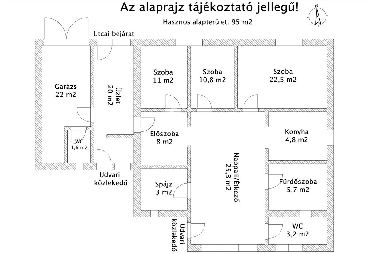- Az egy szintes ingatlanba található: előszoba, 3 szoba, nappali/étkező, konyha, spájz, fürdőszoba, WC