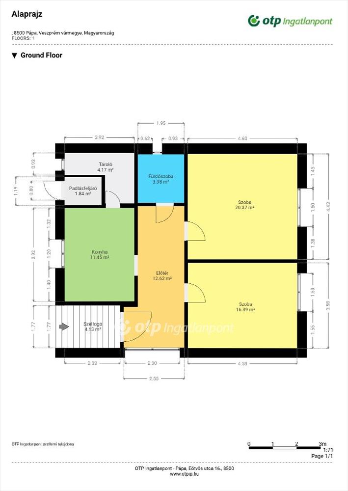 Eladásra kínálok Veszprém vármegyében, Pápán egy folyamatosan karbantartott, igazán otthonos, elrendezésében több lehetőséget magában rejtő, tégla falazatú, 2 szobás, 68, 7 m2-es családi házat, 845 m2-es telken. Az épület műszakilag és esztétikailag jó állapotban van, magas kő alapzattal rendelkezik, tulajdonosa folyamatosan karbantartotta, felújítási munkák végzett, az új tulajdonos igényeinek megfelelően alakíthatja ezt a remek beosztással rendelkező ingatlant. a tetőszerkezete jó állapotú, cserépfedésű, az épület kívülről szigetelést kapott. Az ingatlan 2 teljes értékű, külön bejáratú szobából, konyhából és étkezőből, fürdőszobából és WC-ből, pincéből és szélfogóból áll. Udvara gondozott, körbekerített, rendezett, parkosított. a 845 m2 nagyságú telken található 1 tároló, és kút. a nyílászárók ujjak, műanyagok, redőnnyel ellátottak. Téli hideg napokon a ház melegéről gáz-cirkó kazán gondoskodik, radiátoros hőleadással. a meleg víz ellátása villanybojlerrel megoldott. a ház csendes utcában áll, elhelyezkedése szempontjából meglehetősen jó adottságokkal rendelkezik. Ajánlom mindazon érdeklődők figyelmébe, akik barátságos, biztonságos és nyugodt, családias környezetben keresnek otthont, akár befektetésnek is ideális az elhelyezkedése miatt. Az OTP Ingatlanpont teljes körű ügyintézéssel áll az eladók és a vevők rendelkezésére. a kínálatunkból választott ingatlan finanszírozásához kedvezményes hitelkonstrukciót kínálunk. Az ingatlan megfelel a fix 3%-os Otthon Start Hitelprogram feltételeinek! Az adásvételi szerződés megkötéséhez igény szerint megbízható ügyvédi közreműködést biztosítunk, és segítséget nyújtunk az adásvételhez kapcsolódó ügyek intézéséhez is. Amennyiben felkeltette érdeklődését az általam kínált ingatlan, keressen bizalommal. Az ingatlanról készült alaprajz, illetve fényképfelvételek az OTP ingatlanpont szellemi tulajdonát képezik. Amennyiben felkeltette érdeklődését az általam kínált ingatlan, keressen! Ragadja meg ezt a remek lehetőséget! FIX 3% lakáshitelre megvehető