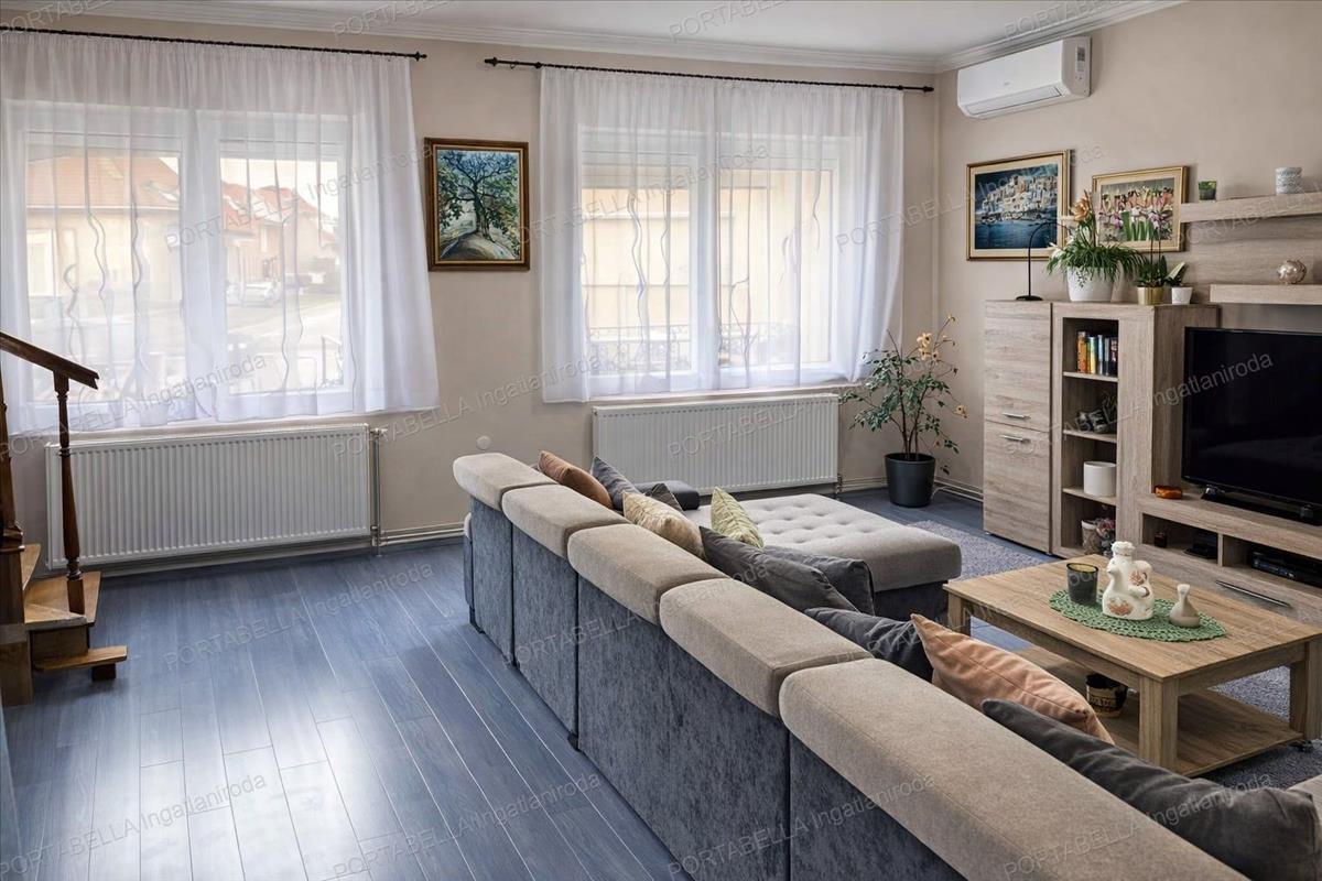 Pápa egyik csendes, zöldövezeti részén kínálunk megvételre egy önálló, tégla építésű, kétszintes családi házat, amely ideális választás mindazok számára, akik nyugodt környezetben, mégis kényelmes élettérben szeretnének élni. a 116 m²-es ingatlan masszív szerkezettel rendelkezik: 45 cm-es falazattal és vasbeton födémmel épült, így hosszú távon is stabil, értékálló otthont biztosít. a ház 1980-ban épült, majd 2025-ben felújításon esett át, ennek köszönhetően a klasszikus építési minőség korszerűbb megoldásokkal párosul. a belső tér két szinten helyezkedik el, praktikus kialakításának köszönhetően kiválóan alkalmas családi életre. a beépíthető tetőtér további lehetőségeket rejt magában, így az ingatlan igény szerint tovább bővíthető, személyre szabható. a komfortérzetet három darab hűtő-fűtő split klíma biztosítja, amelyek a hálószobákban kerültek elhelyezésre. Emellett a ház gázfűtéssel rendelkezik, amely három éve teljesen megújult, korszerű immergas gázkazánnal működik. Az ingatlan teljes közműellátottsággal rendelkezik: víz, villany (3×16a), gáz és csatorna egyaránt rendelkezésre áll. Az internet- és televíziószolgáltatás szintén biztosított. Az udvar egyik különlegessége egy különálló melléképület, amely számos lehetőséget kínál: irodának, üzlethelyiségnek, szépségszalonnak vagy akár egyéb vállalkozási célra is kiválóan kialakítható. a ház nyugodt, zöldövezeti környezetben, aszfaltozott utcában található, ahol az ingyenes parkolás is megoldott. Az ingatlanhoz tartozó önálló tároló a vételár részét képezi, ezzel is növelve a praktikumot. Ez az otthon kiváló választás mindazok számára, akik Pápán egy csendes, élhető környezetben található, felújított, ugyanakkor tovább fejleszthető családi házat keresnek. FIX 3% lakáshitelre megvehető