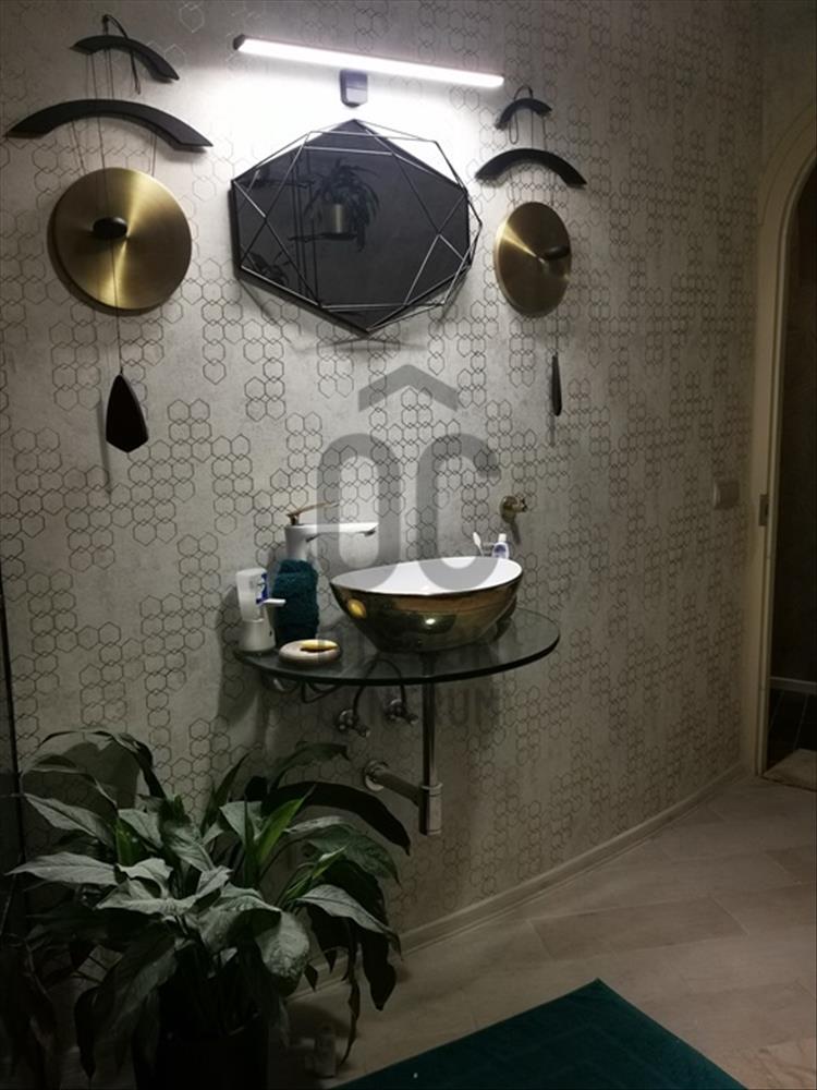 A lakás két szintes, melynek földszintjén került kialakításra egy 8 m átmérőjű kör alapterületű nappali étkezővel, két szoba, melyből az egyiket jelenleg gardrób szobának használnak, wc, konyha, kamra és egy utcáról nyíló szerelőaknás garázs, elektromos kapuval, itt üzemel a gáz kazán és a villany bojler.