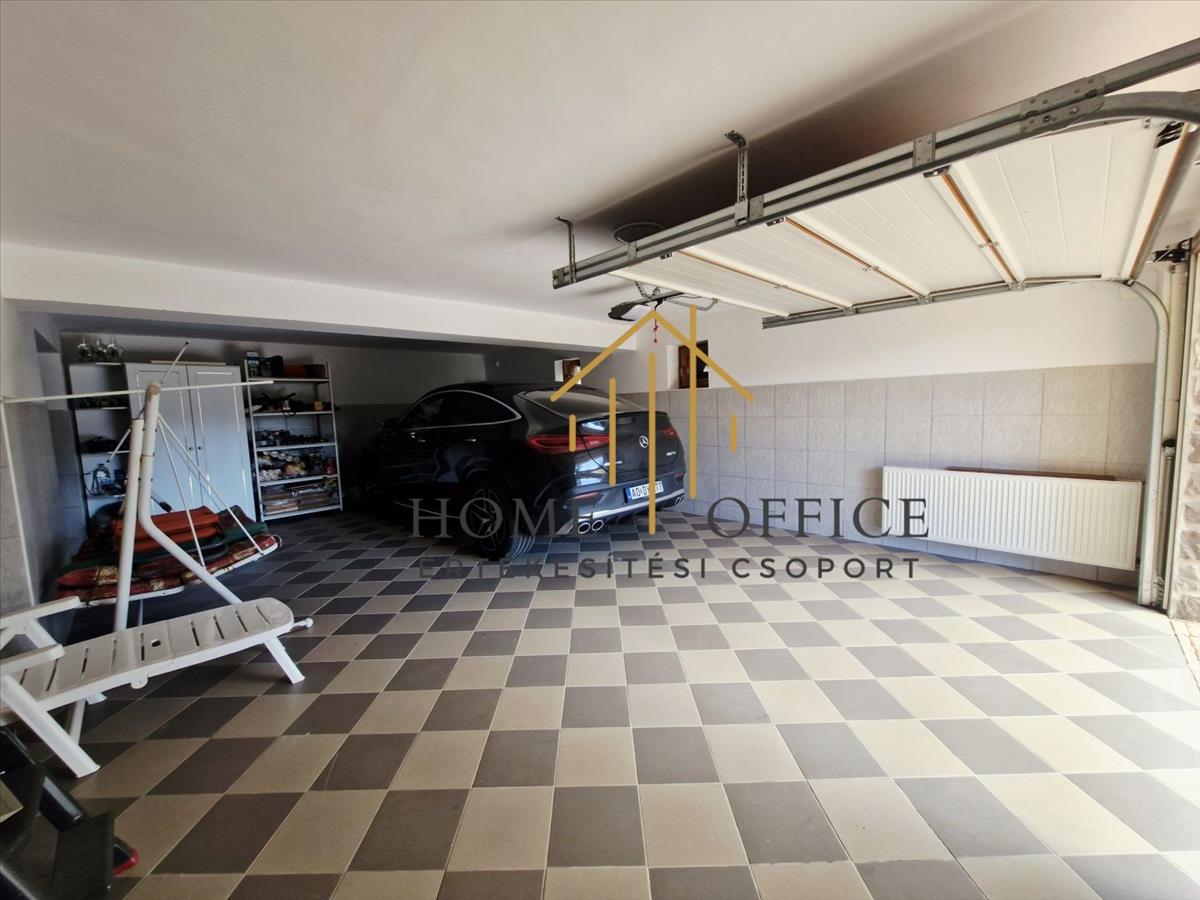 A földszinti részen található egy burkolt, fűtött dupla garázs, valamint innen nyílik egy helyiség, ami a tároláson túl ideális lehet borozónak, játékszobának, wellness rész kialakításának.