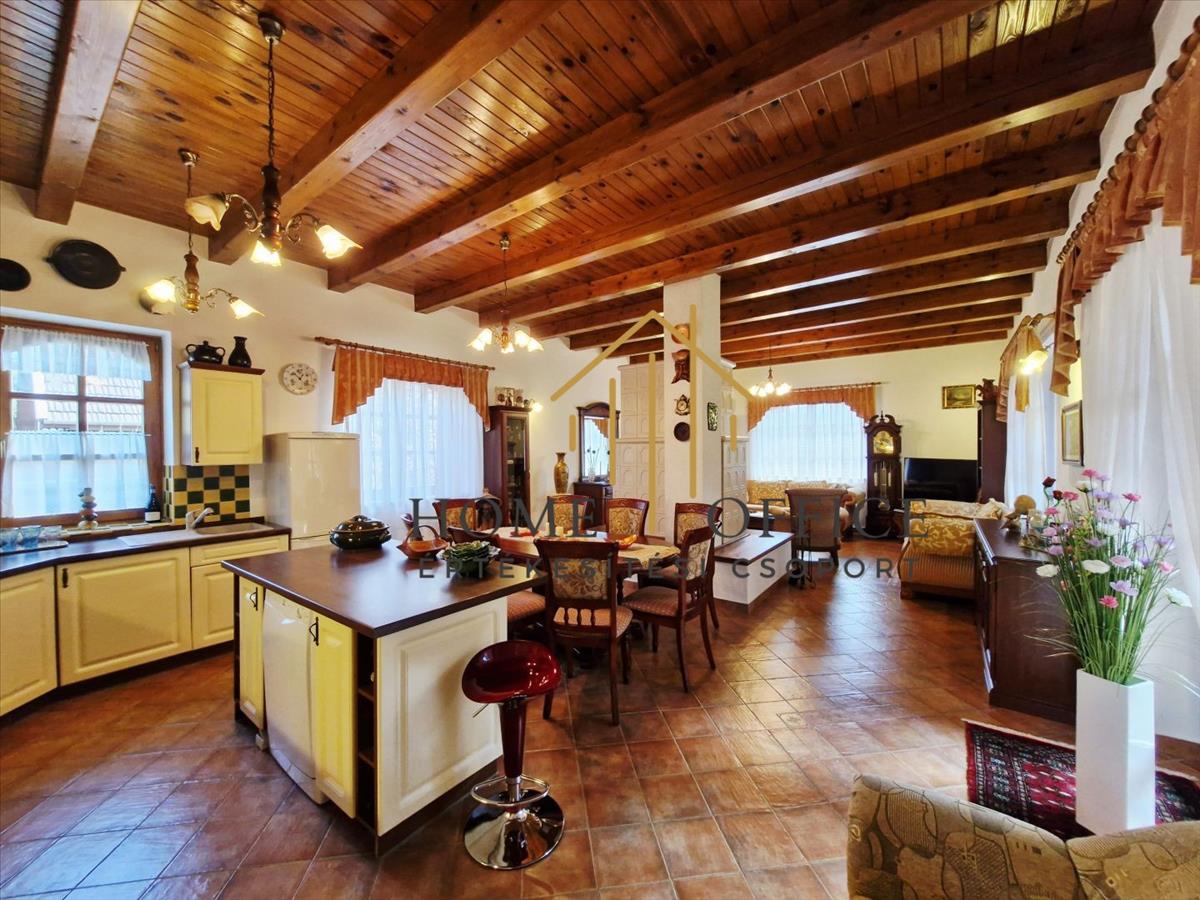 Az egész házban látszógerendák vannak, ami által a természetközeliség bent is megjelenik.