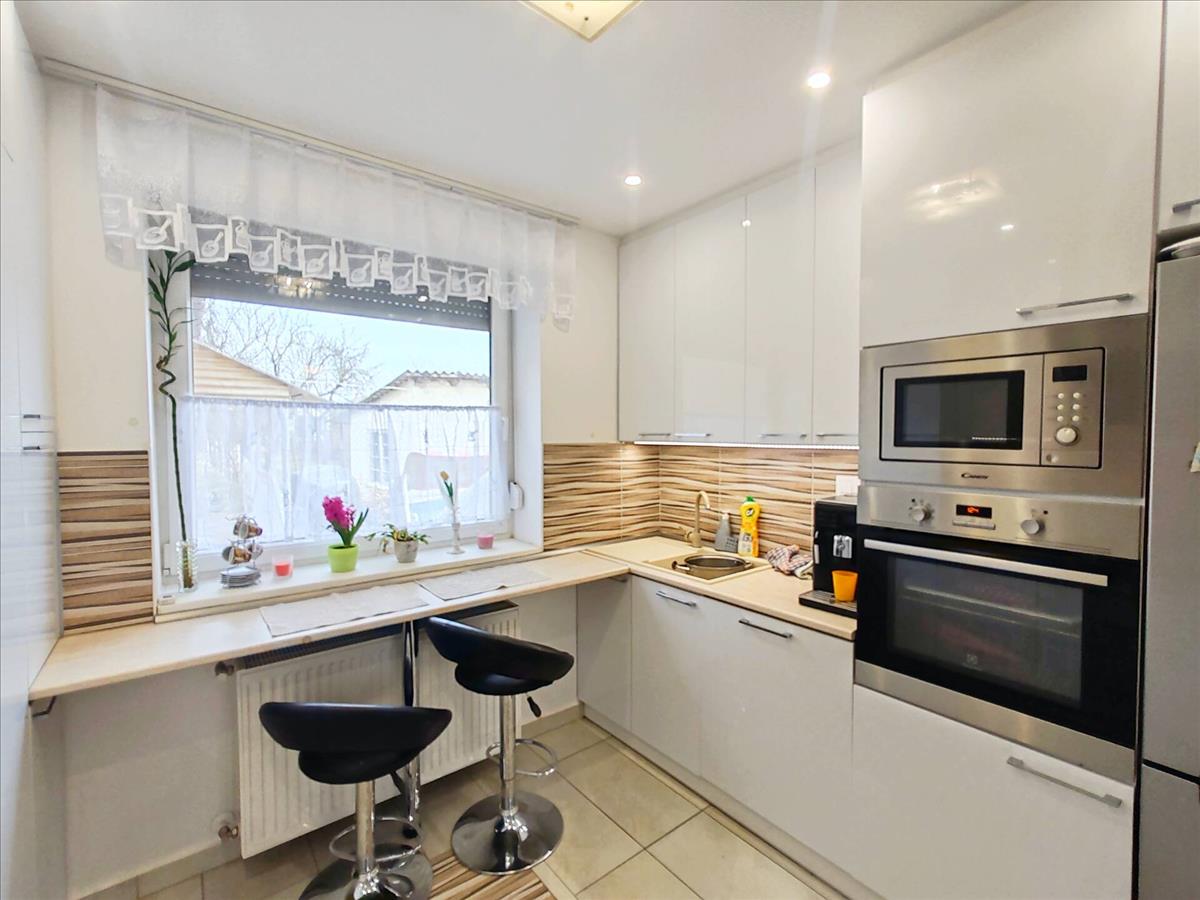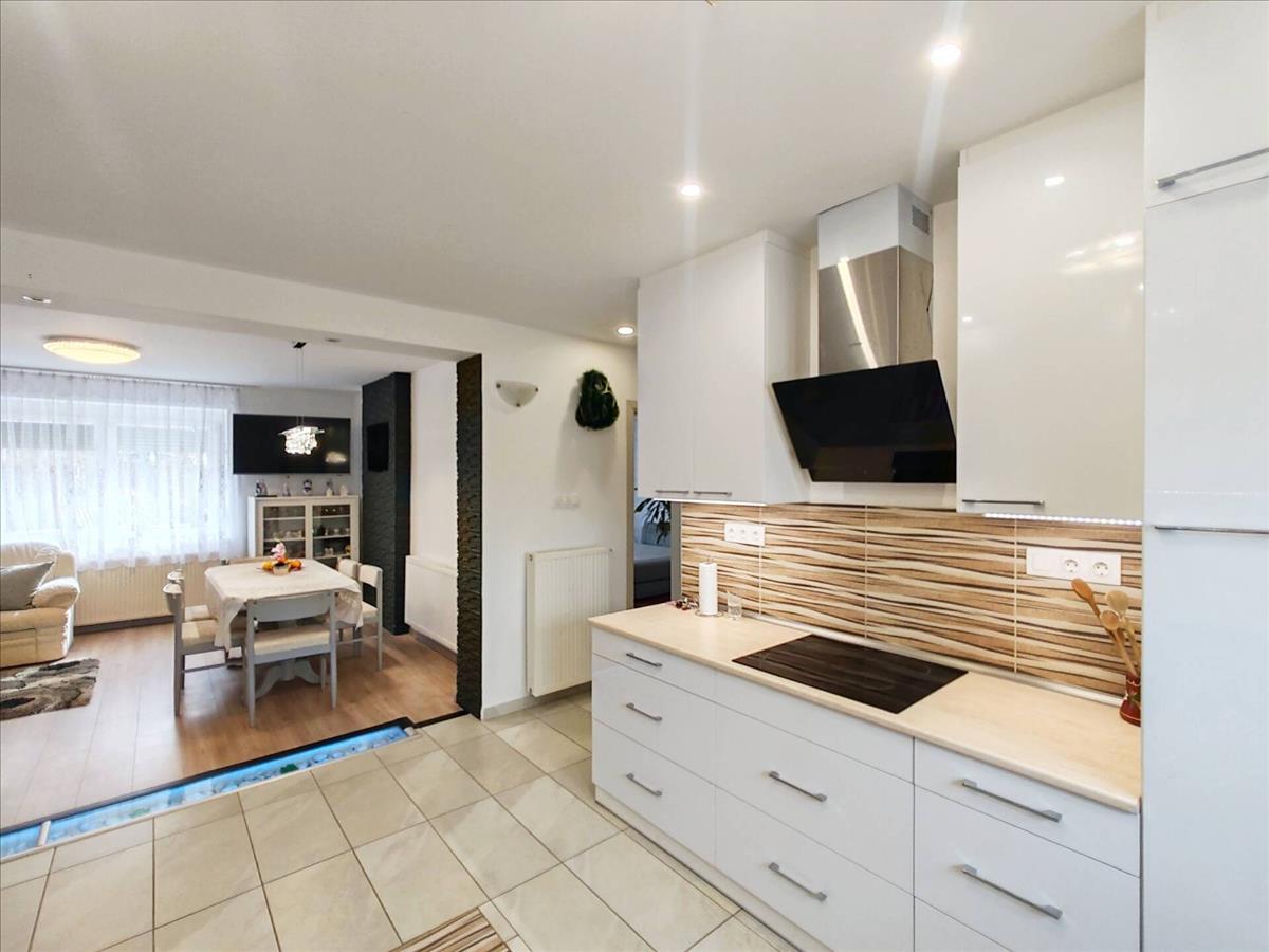 A vételár részét képzi a felújított 74 m2-es háztartás beépített egyedileg gyártott konyhabútora és gépesítése.