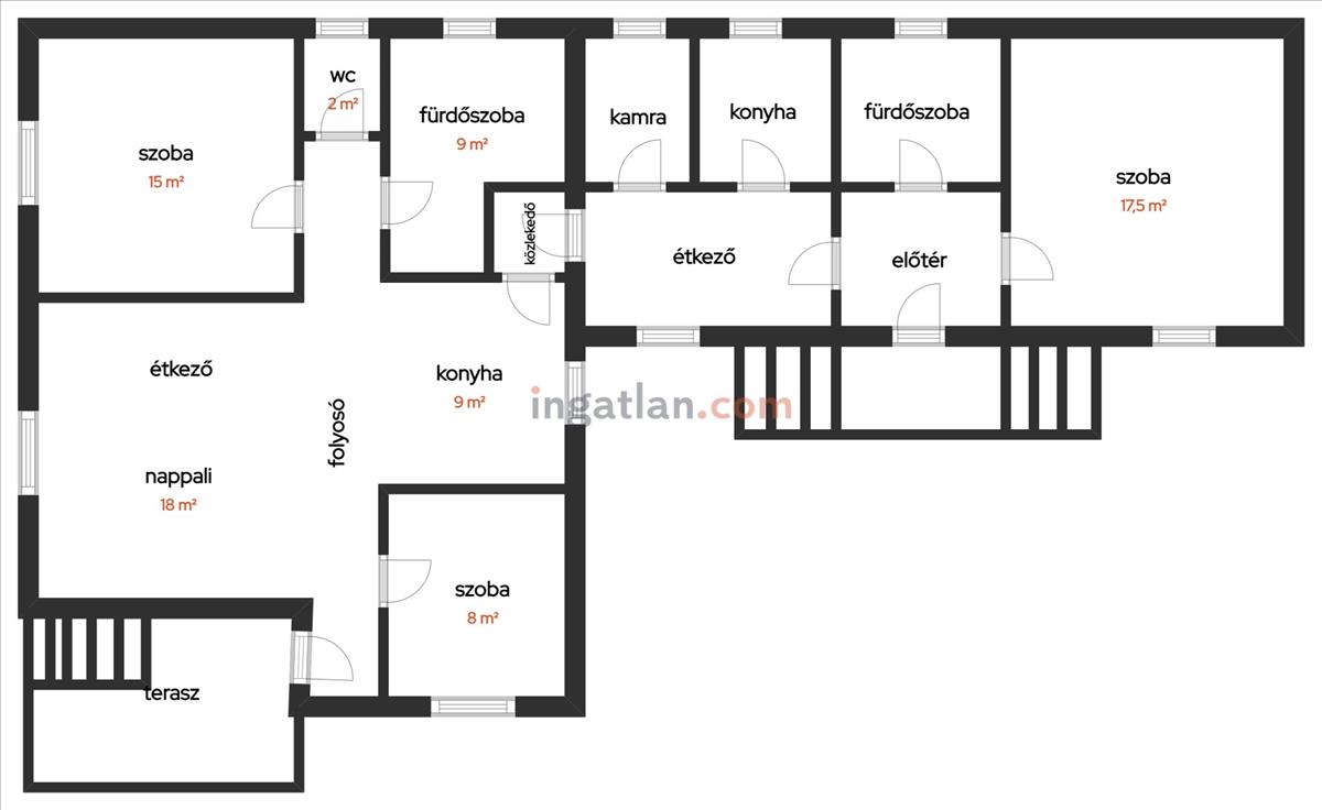 Az ingatlan 1. 064 m2-es összközműves telken épült téglából 1956-ban. Jelenleg kettéosztott az ingatlan. Áll egy teljeskörűen felújított házrészből mely 74 m2 és egy átlagos állapotú lakrészből ami 43 m2 és belülről is átjárható.
