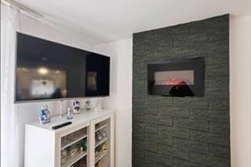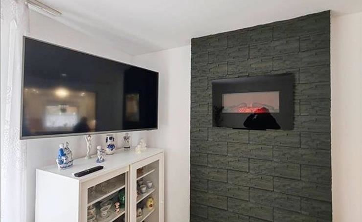 - Látványkandalló beépítése a nappaliban és terméskő falburkolat