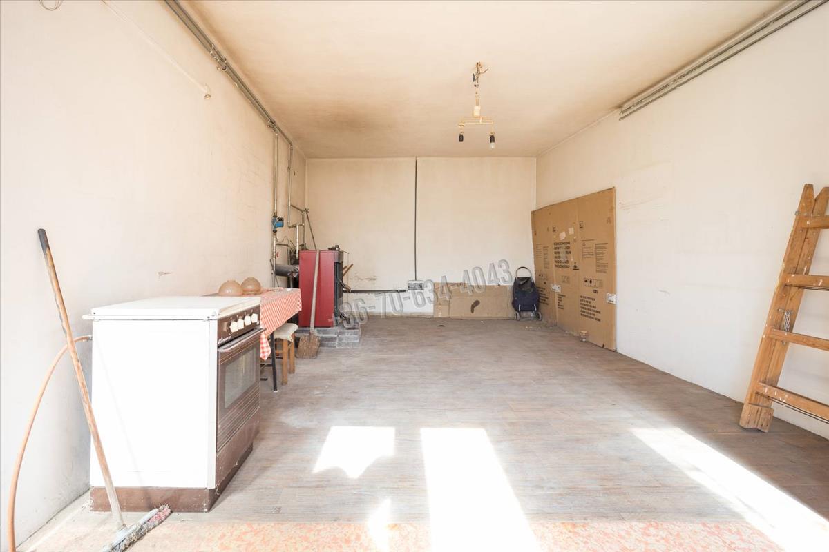 A további lakrészben található a kazánhelyiség, amely nagysága lehetővé teszi még egy szoba kialakítását.