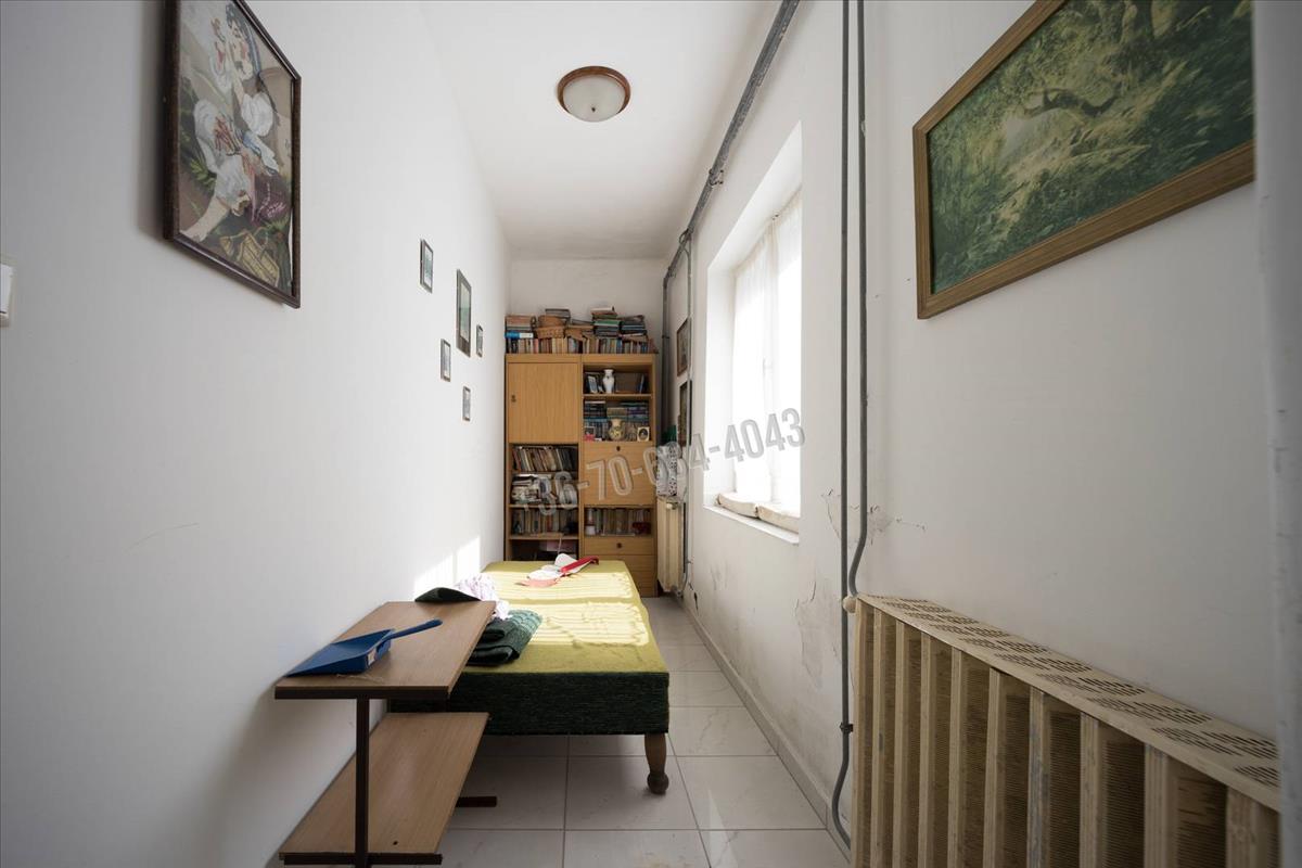 A hátsó bejáratnál található egy előszoba, egy szoba, egy konyha, illetve tusoló helyiség kézmosóval ellátva és 2 wc. Jelenleg ebben a részben a szennyvízelvezetés és vízellátás nem megoldott. Nem lett lakrésznek kialakítva.