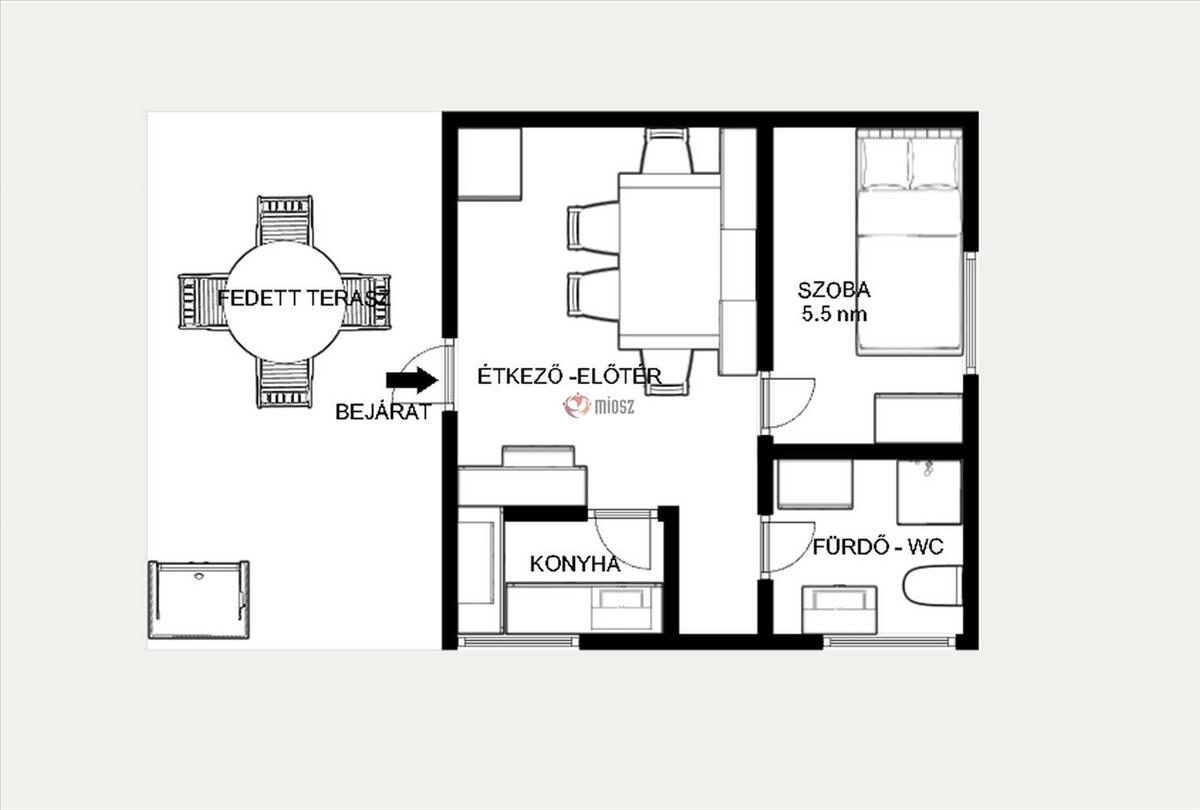 - fürdőszoba WC-vel (meleg víz: bojler)