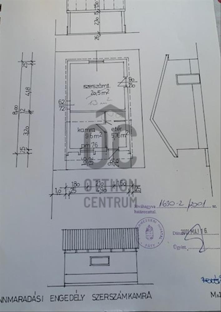 A 80 nm alapterületű, szigetelt főépülethez egy 14, 46 nm alapterületű terasz tartozik.