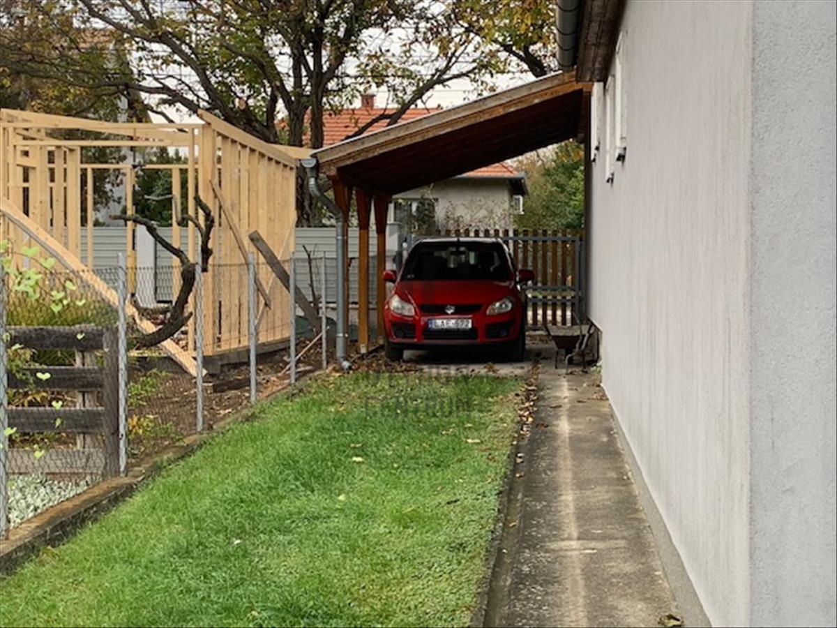 A kertben kialakításra került egy autó számára egy fedett kocsibeálló.