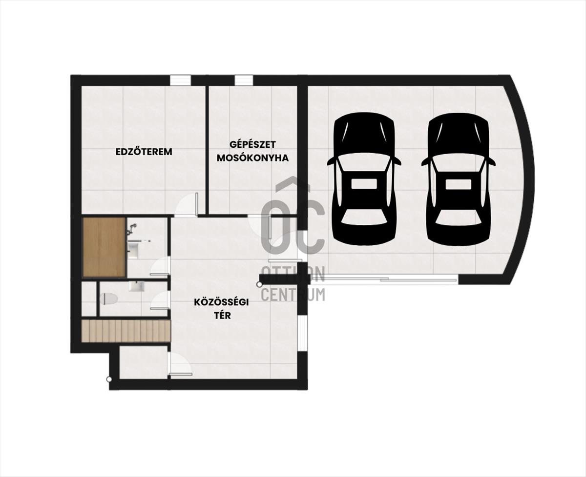 - Az alsó szinten található két állásos garázs mellett, további két nyitott autóbeállási lehetőség van.