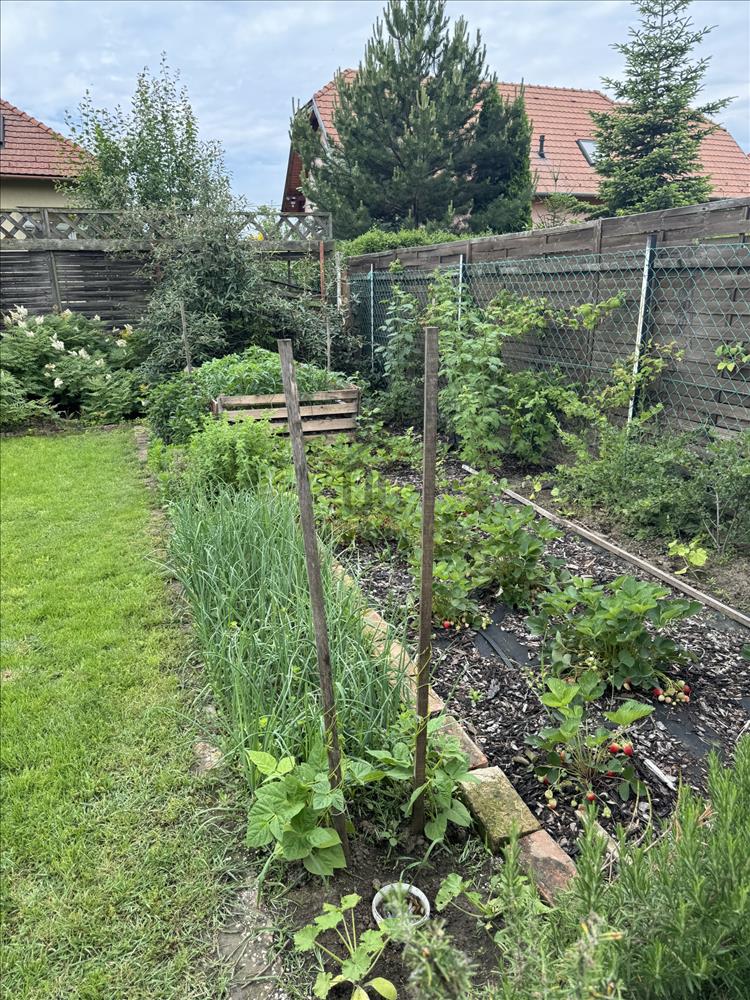 A 725 nm-es telken található két autó beállására alkalmas garázs, valamint egy kellemes kert, mely tökéletes helyszín a családi programokhoz.