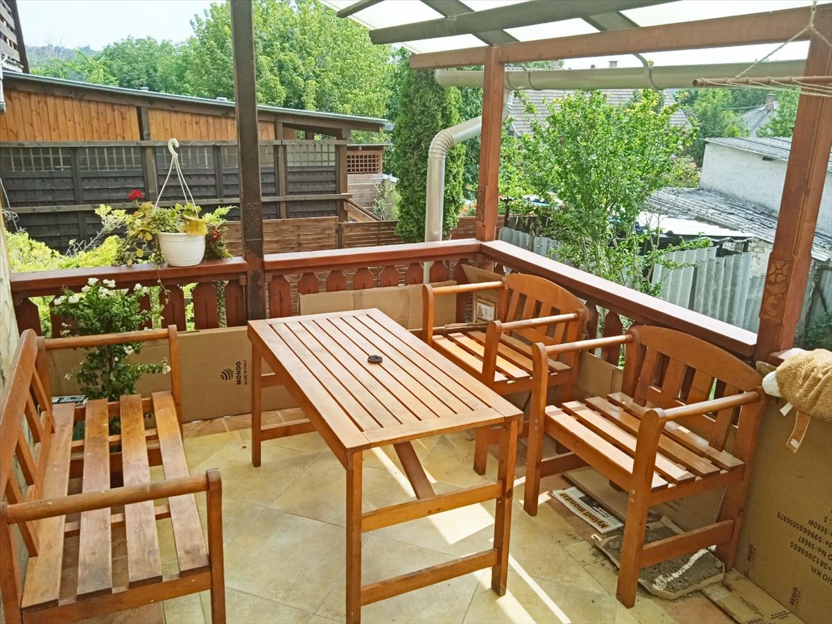 Az alsó szinten egy gyönyörű fedett terasz, fent 2 fedett terasz található. a felső szinten a falban van a gázcső, így az egyik félszoba átalakításával a felső szinten is kialakítható egy konyha, ami által önálló lakrésszé alakítható a teljes felső szint.