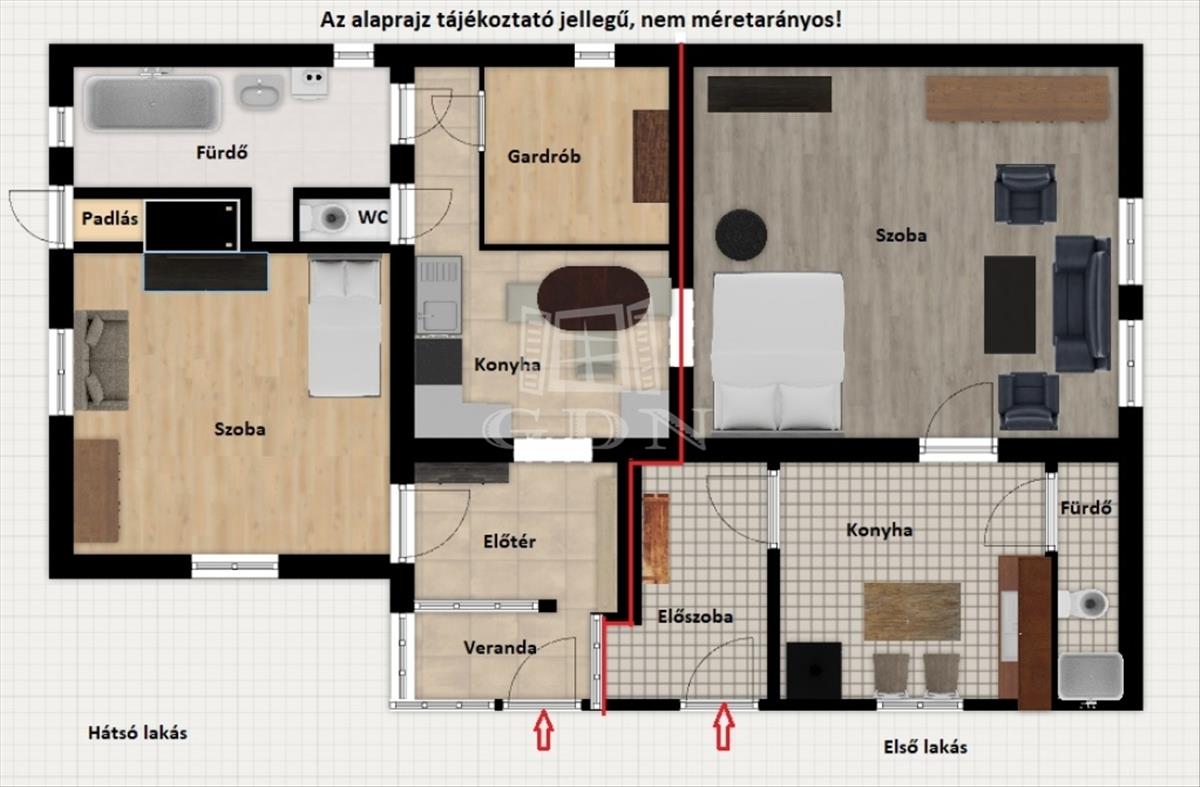 KÉT külön lakás van benne kialakítva, külön víz és villanyórákkal.