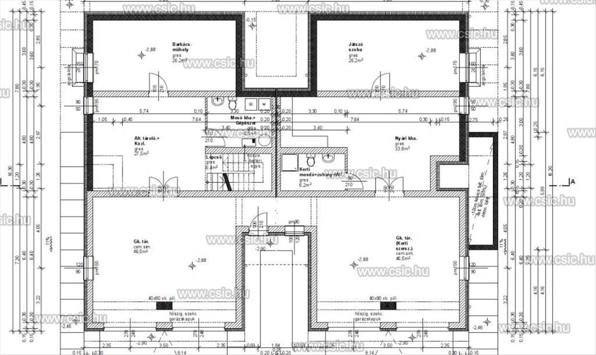 4 Különnyíló garázsbeálló és hatalmas, teljesértékű szuterén helyiségekkel várja jövőbeni tulajdonosát, aki a már alapjaiban kialakított moziszobát életre hívhatja, mellette szaunával, edzőteremmel gazdagíthatja, de akár vendéglaknak, vagy külön lakásnak is berendezhető, mivel saját fürdőszobával és konyha elhelyezésére alkalmas kiállásokkal lett ellátva.