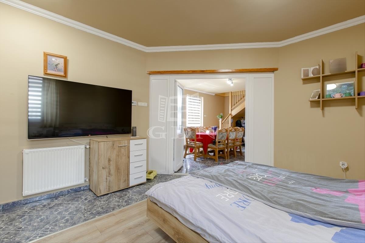 Az újabb épület 2 szintes, 2007-ben épült, beton alapra, 30 cm ytong téglából, körbe 5 cm-es dryvit szigeteléssel, beton födémmel. Ezen az épületen viszont 2022-ben tetőcsere történt, bitumenes födém helyett, Lindab cseréplemezes fedést kapott, illetve műanyag thermo nyílászáróval rendelkezik. Ez az ingatlan kiváló állapotú, folyamatosan karbantartott, dupla fürdőszobával, épített kandallóval, riasztóval felszerelt, melyhez tartozik egy közvetlen fedett gépkocsibeálló és egy medence is.