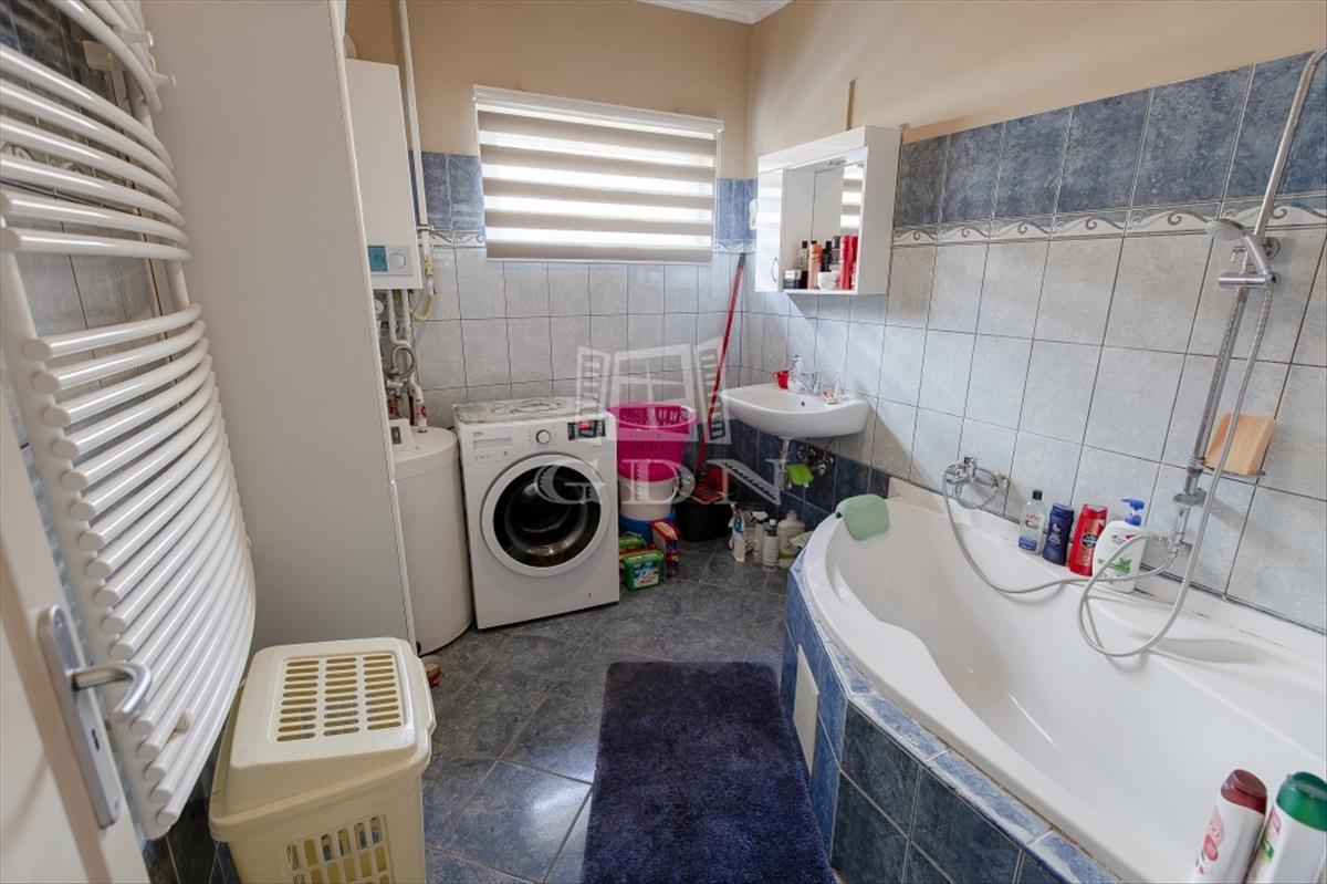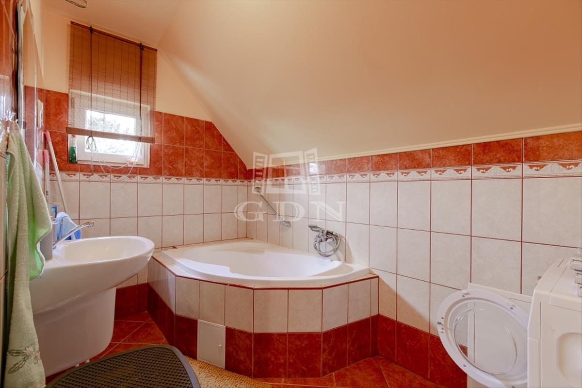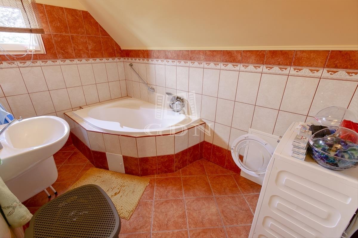 Az újabb épület 2 szintes, 2007-ben épült, beton alapra, 30 cm ytong téglából, körbe 5 cm-es dryvit szigeteléssel, beton födémmel. Ezen az épületen viszont 2022-ben tetőcsere történt, bitumenes födém helyett, Lindab cseréplemezes fedést kapott, illetve műanyag thermo nyílászáróval rendelkezik. Ez az ingatlan kiváló állapotú, folyamatosan karbantartott, dupla fürdőszobával, épített kandallóval, riasztóval felszerelt, melyhez tartozik egy közvetlen fedett gépkocsibeálló és egy medence is.