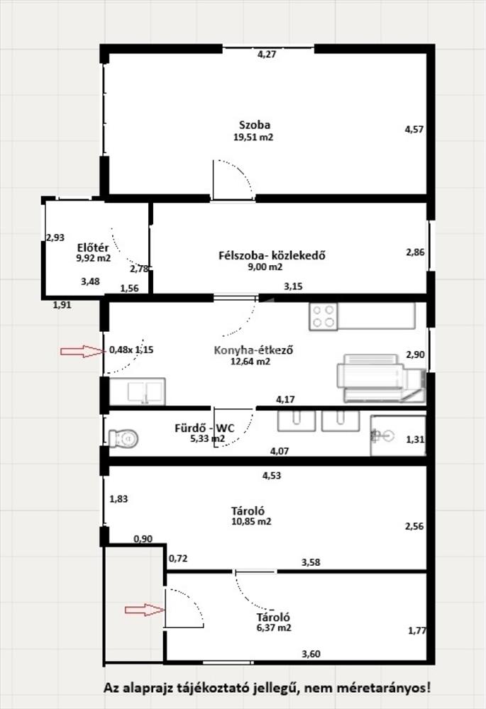 • 9, 00 m² fél szoba (közlekedőként használva)