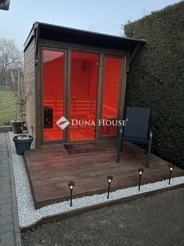 Modern családi ház PécsÚjhegyen napelemmel és dupla garázzsalPécs Újhegy csendes részén, a Barázda utcában eladó egy 2010-ben épült, egyszintes családi ház, amely ideális választás lehet családok számára. 164 M² összterület 132 m² lakótér 32 m² kétállásos garázsHelyiségek: amerikai konyhás nappali étkezővel 3 hálószoba gardróbszoba 2 fürdőszoba + vendég wc kamra és háztartási helyiség 20 m² fedett teraszFőbb műszaki jellemzők:Viessmann gázkazánpadlófűtés és radiátorvízteres kandallóHoneywell helyiségenként szabályozható fűtés5, 2 kW klíma3x25 Amper 7 kW napelem rendszer szaldó elszámolással 2030. 12. 31-IgExtrák: elektromos alumínium redőnyök elektromos garázskapu és kertkapu riasztórendszer és kamerarendszer vízlágyítóUdvar: * telepített robotfűnyíró* privát kert Leylandi sövénnyel* privát játszótér* kerti sütő / grill rész* 10 m² faház* fatároló* finn szauna és jakuzzi* 10m3-es ciszterna gépesítve öntözésre* gyümölcsfákNyugodt, családi házas környezet, tágas és világos terekkel. Minden adott, hogy ez legyen az új, komfortos otthona. Érdeklődés esetén keressen bizalommal. Tekintsük meg együtt, hogy személyesen is meggyőződhessen, ez amit eddig keresett!