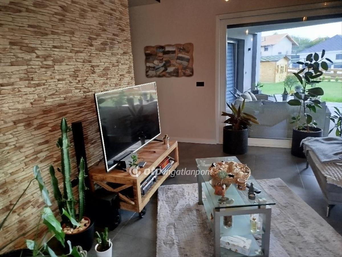 Ez a gondosan tervezet és modern stílusban kivitelezett otthon 1220 nm-en telken, nyugodt csendes környezetben. Könnyűszerkezetes nagy belmagassággal a nappali teteje szalufáig burkolva van. Melléképülete külön álló, 30 nm-es klímával, melyben jelenleg konditerem van. Nagy ablakok és tágas világos terek jellemzik.
