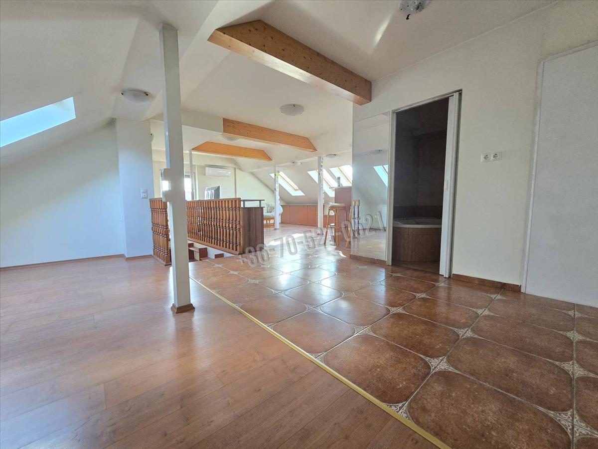 A tetőtér szobája egy hatalmas konyha-nappaliból áll, és a hozzá tartozó gardrób, és fürdőszoba wc-vel kialakítással rendelkezik.