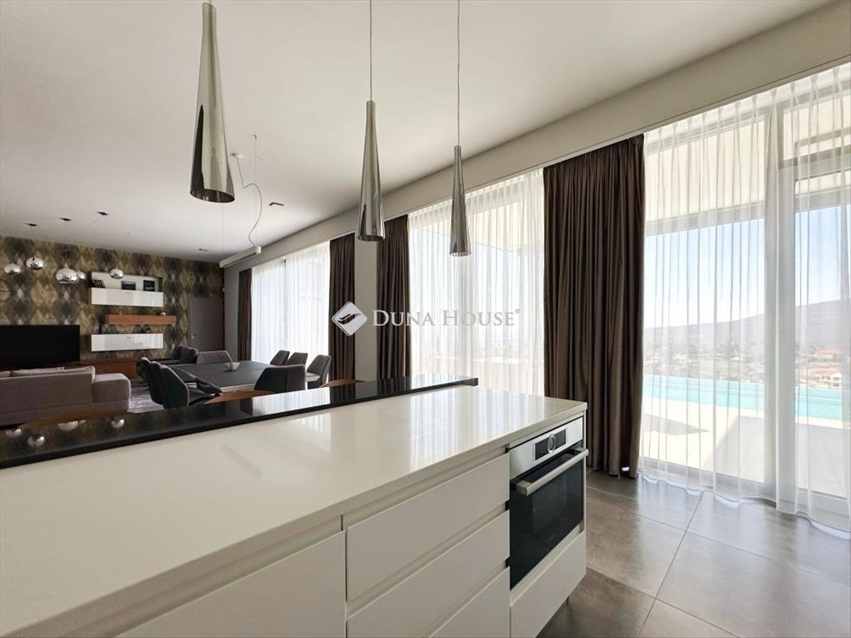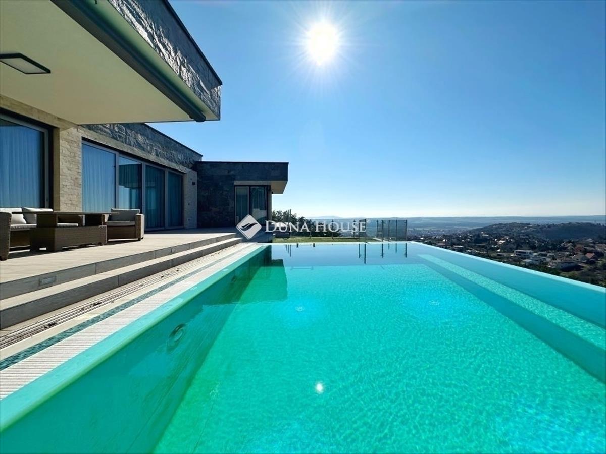 Exkluzív panorámás családi ház eladó Pécs MecsekoldalánPécs, Mecsekoldalon kínálunk megvételre kivételes adottságokkal rendelkező, újszerű állapotú családi házat. a gondosan megtervezett terek, a prémium anyaghasználat és a lenyűgöző körpanoráma tökéletes harmóniát alkotnak. Főbb jellemzők: 220 m² letisztult, elegáns lakótér 2087 m²-es, teljes intimitást biztosító telek 3 hálószoba, 2 fürdőszoba Világos, nagyvonalú belső terek, modern élettér-kialakítás 60 m²-es panorámás, részben fedett terasz 45 m²-es feszített víztükrű medence Privát szauna a teljes kikapcsolódásért Zavartalan körpanoráma Prémium műszaki tartalom: Energiahatékony hőszivattyús rendszer Wolf központi szellőztető rendszer Vízlágyító és automata öntözőrendszer Elektromos zsalúziák minden nyílászárón Riasztó- és kamerarendszer Magas szintű kivitelezés: 38-as pth falazat, 10 cm-es hőszigeteléssel Modern alumínium nyílászárók Időtálló, elegáns mészkő homlokzat Prémium burkolatok: minőségi laminált parketta és mázas kerámia 40 m²-es garázs Hörmann kapuval Teljesen intim, zárt telek További értékek: Az ingatlan mindössze 5 éve épült, újszerű állapotban van Igény esetén teljes bútorzattal (megegyezés szerint) a vételár részét képezi egy kb. 700 M²-es, panorámás, részben közművesített telekrészEz az ingatlan ideális választás azok számára, akik kompromisszumok nélkül keresnek exkluzív otthont, páratlan környezetben. További információért kérem, keressen bizalommal!
