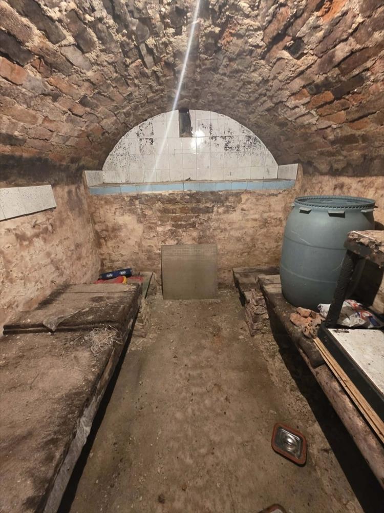 A jelenlegi elosztás szerint a földszinten található a régen prés térnek nevezett ma már tárolóként hasznosított 25 m2 nagyságú helyiség, ahol a vegyes tüzelésű kazán, a 34 méter mély fúrt kút puffertartájai, a gázkazán helye és a gázóra található. Innen jutunk le a pincébe is, mely száraz, és egész évben ugyanazon a hőmérsékleten üzemel.