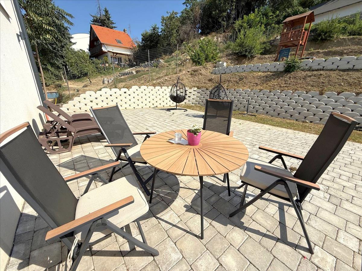 - Középső szinten (80 nm) egy tágas konyha-étkező nappali, kamra, egy hálószoba, fürdőszoba-wc, gardrób, külön wc, valamint egy fedett, panorámás terasz (21 nm) található.