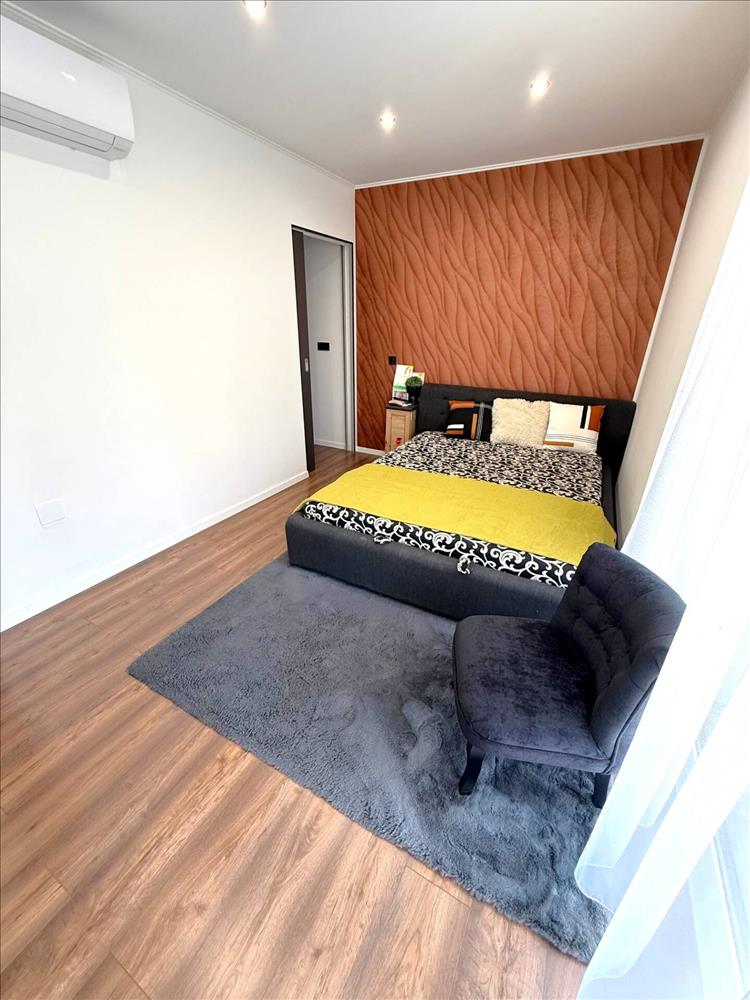 - Felső szinten (49 nm) kettő hálószoba, fürdőkáddal és zuhanyzóval ellátott fürdőszoba, külön wc és hatalmas, örökpanorámás terasz (51 nm) található. Az egyik háló kényelmesen két külön szobává alakítható.