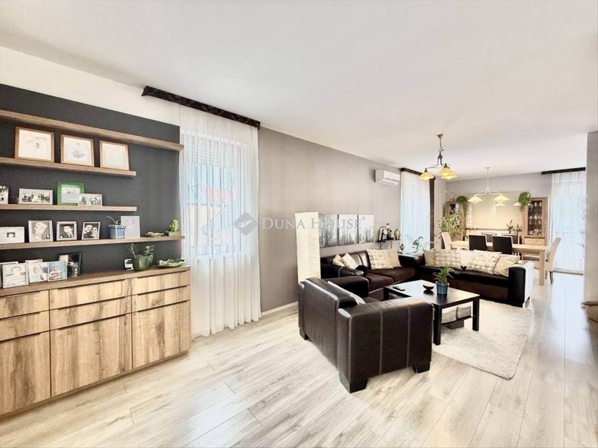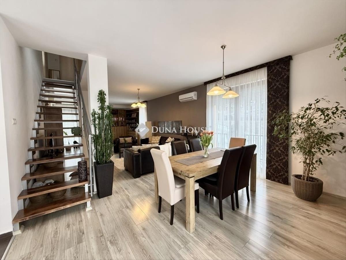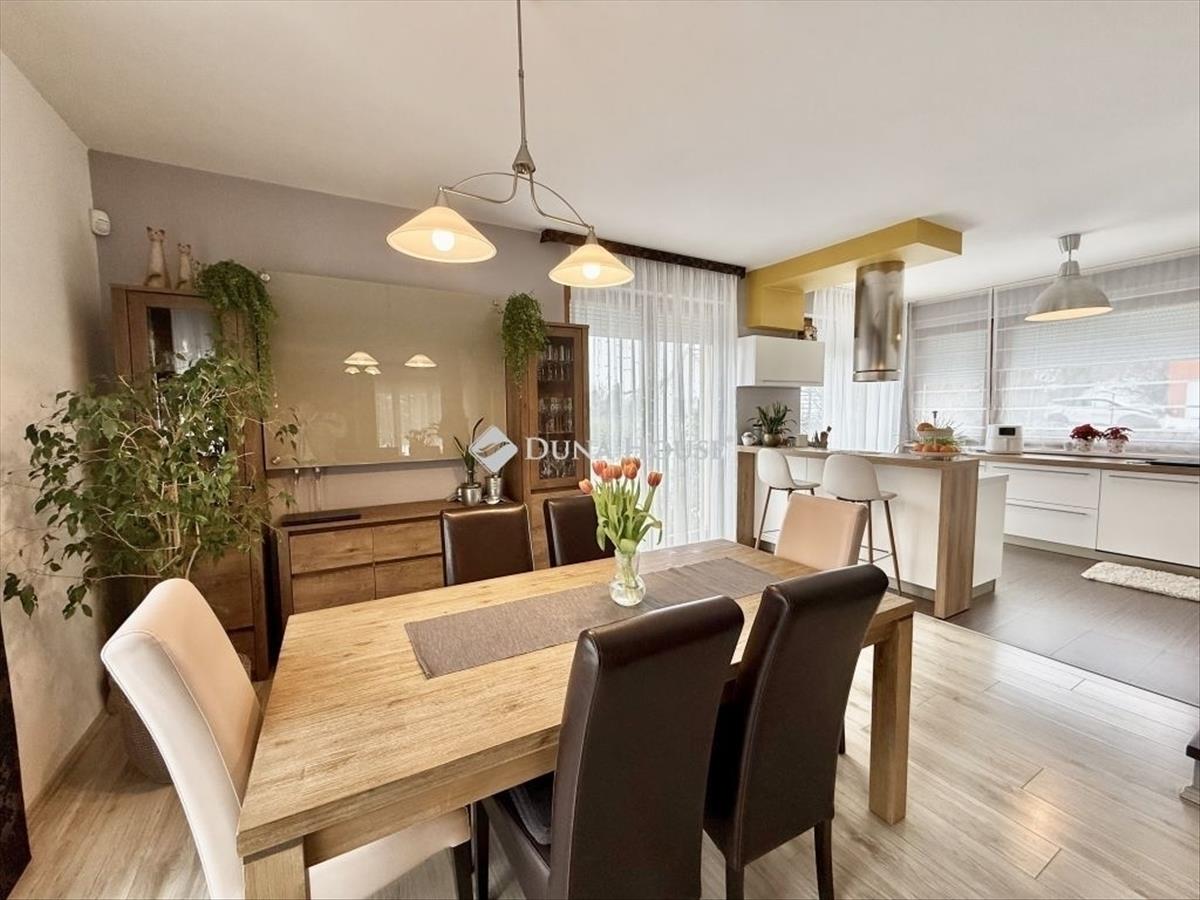 Családi ház hangulatú, tágas otthon eladó a csendes, zöldövezeti Donátusban! Pécs egyik legkedveltebb, panorámás részén, Donátusban, a Csoronika dűlőben kínálunk megvételre egy 2010-ben épült társasházi ingatlant, amely kialakításának köszönhetően teljes mértékben családi ház érzetét nyújtja ez a ritka kombináció igazán különlegessé teszi! a 124 m²-es, kétszintes, amerikai konyhás nappali + 4 szobás otthon ideális választás nagyobb családok számára is. Az ingatlan tágas, világos terekkel rendelkezik, kiváló elosztású és kertkapcsolatos. Alsó szint:-Tágas, napfényes amerikai konyhás nappali-Közvetlen kijárat a parkosított, kertre és fedett teraszra-Egy hálószoba, melyhez saját zuhanyzós fürdőszoba és wc tartozik-háztartási helyiségFelső szint:-3 külön nyíló szoba-Két szobából kijárat a 25 m²-es, panorámás teraszra-Fürdőszoba-Külön WCMűszaki jellemzők:-Kondenzációs gázkazános fűtés-Riasztórendszer-3 db klímaAz ingatlan csendes, nyugodt, kiváló donátusi környezetben található, gyönyörű panorámával tökéletes választás azok számára, akik természetközeli, mégis városhoz közeli otthont keresnek. Igény esetén megvásárolható egy önálló, 17 m²-es garázs, melynek ára: 10. 000. 000 Ft. Ha egy családi ház hangulatát keresi, de társasházi környezetben, ezt az ingatlant mindenképpen érdemes megtekinteni!