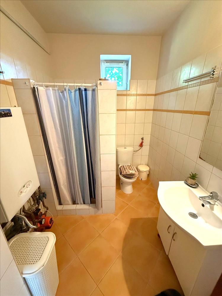 Fűtése gáz-cirkó padlófűtéssel, de egy kandalló is található a házban.