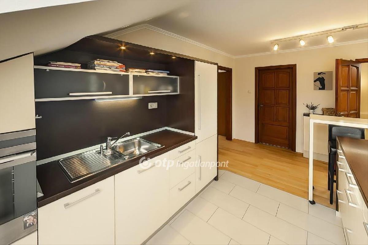 - Amerikai konyhás nappali az emeleten 46 m2-es, hatalmas ablakokkal és egy panorámás erkéllyel.