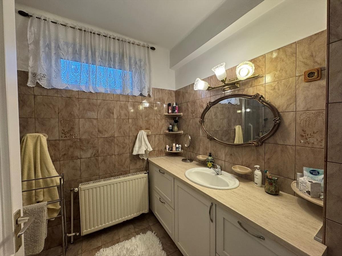 A középső szint kényelmes és élhető lakóteret kínál, ahol előszoba, konyha, étkező, nagy nappali és egy igényes fürdőszoba kapott helyet. a ház fűtését padlófűtés és radiátorok együttesen biztosítják, amelyeket egy öt éves gázkazán lát el, míg a melegvíz ellátását gázbojler szolgálja. a nappali nagy ablakfelületei rengeteg természetes fényt engednek be, ezzel világos, barátságos hangulatot teremtve, amely ideális helyszín a mindennapi családi élethez.