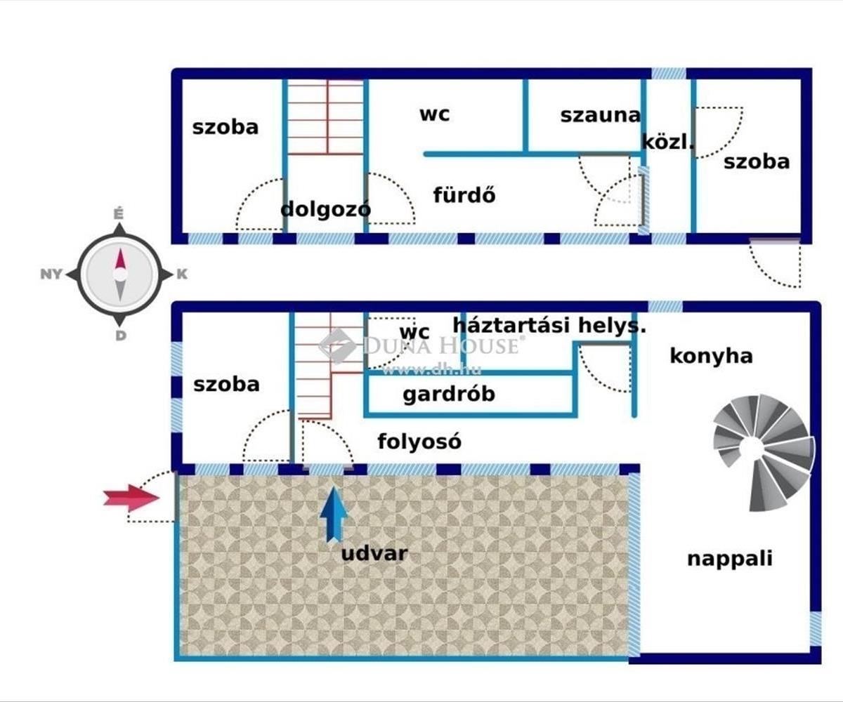 - nappaliból közvetlen kapcsolt van a kis udvar felé, a speciális ajtó