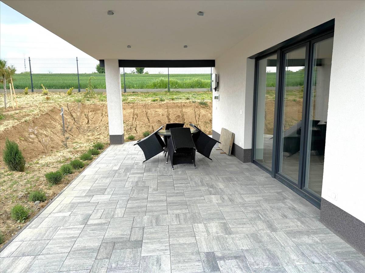 A ház déli oldalán, nappaliból nyíló, 30 nm-es, fedett terasz található.