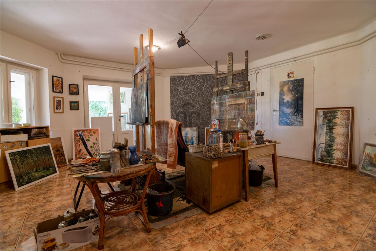 A hálószobák galériás kialakítása behozza a kertet és a panorámát a reggeli ébredéshez. a földszinten egy napfényes műterem van, ahol ezidáig is remek alkotások születtek.