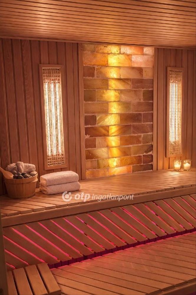 Főbb paraméterek: Hasznos alapterület: 363 nm Alsó szint: wellness részleg, garázs, tárolók (162, 6 nm ) Középső szint: nappali, étkező, konyha, 2 szoba (119, 9 nm ) Felső szint: hálószobák, fürdőszoba (81 nm ) Telek mérete: 1072nm , automata öntözőrendszerrel. Wellnessrészleg: 60. 000 Literes, fűthető, 10 méteres medence, Finn szauna, infraszauna és sókamra egyben.