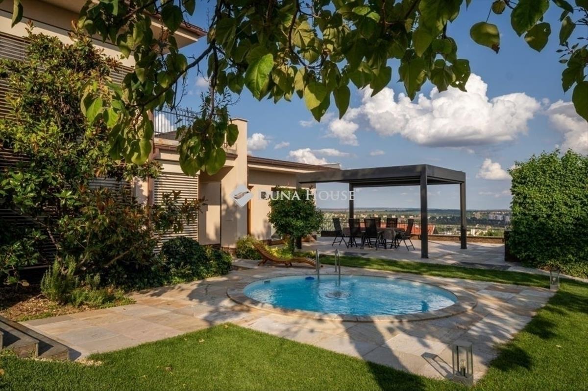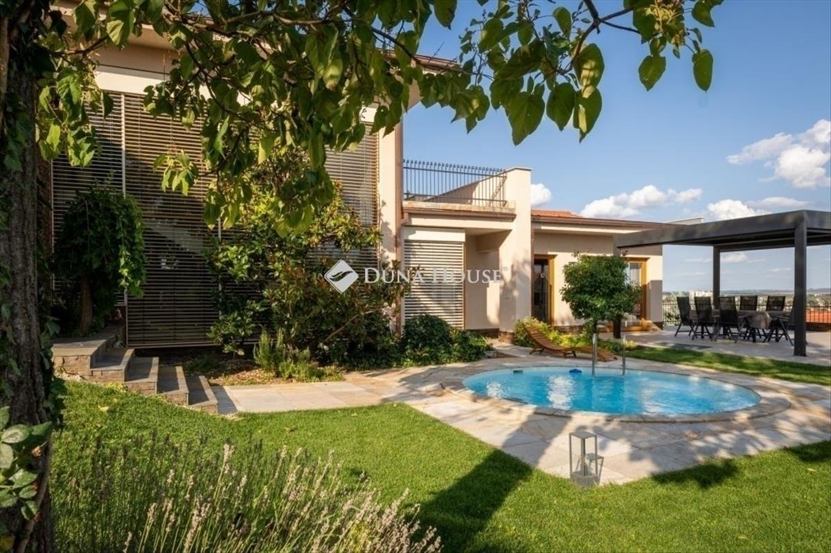 Eladó egy ritka gyöngyszem ingatlan, mely 2000 m2-es telken lévő családi otthon, 380 m² összterülettel büszkélkedhet, ideértve a fő lakóteret, amely 5 hálószobával, rendelkezik. Ezenkívül egy külön 55 m²-es lakást, egy 2 beállásos garázst, tárolókat, valamint egy több mint 100 m²-es, természetes kőburkolatú terasszal, pergolával, parkosított kerttel, halas tóval.