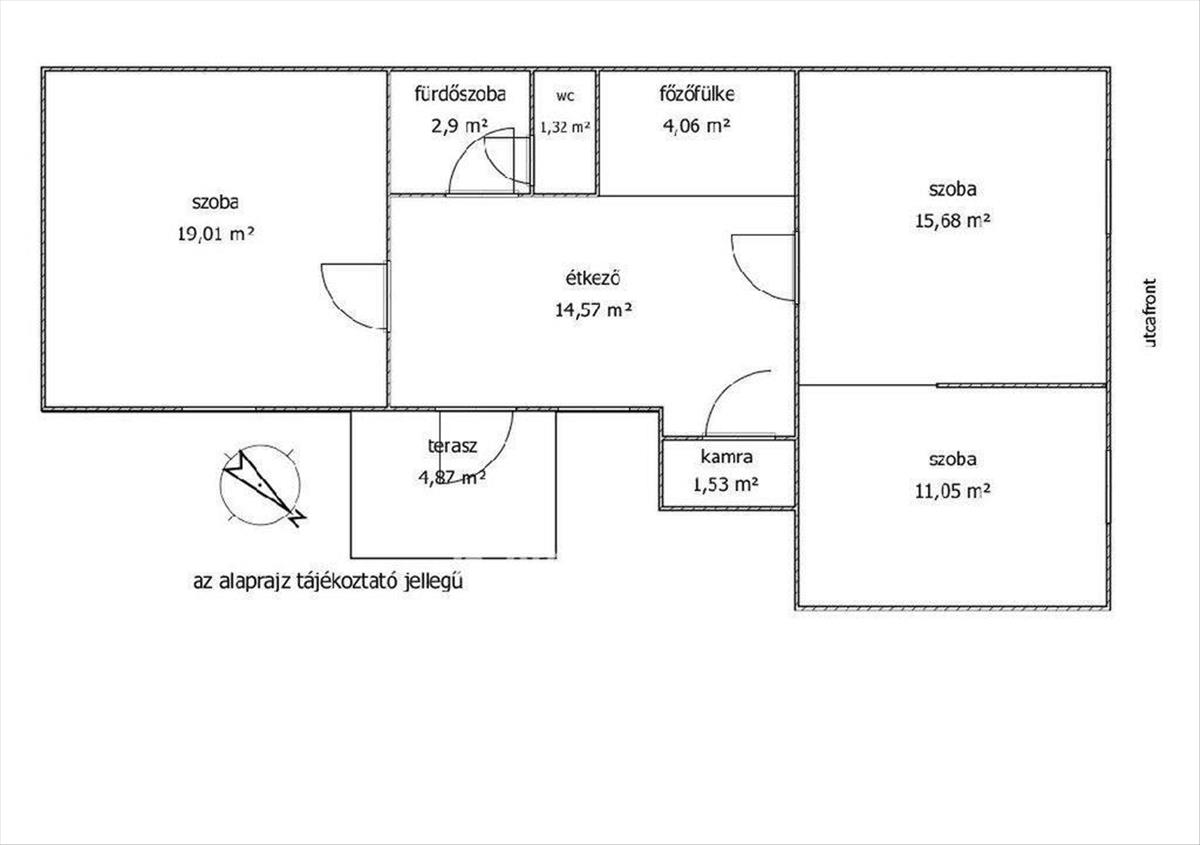 Jelenleg főzőfülke van a házban. Kisebb átalakítással a kamra mellé lehet telepíteni konyhát.