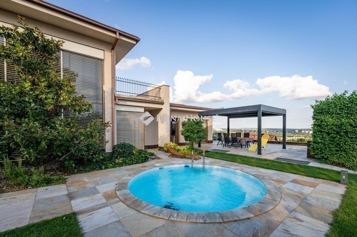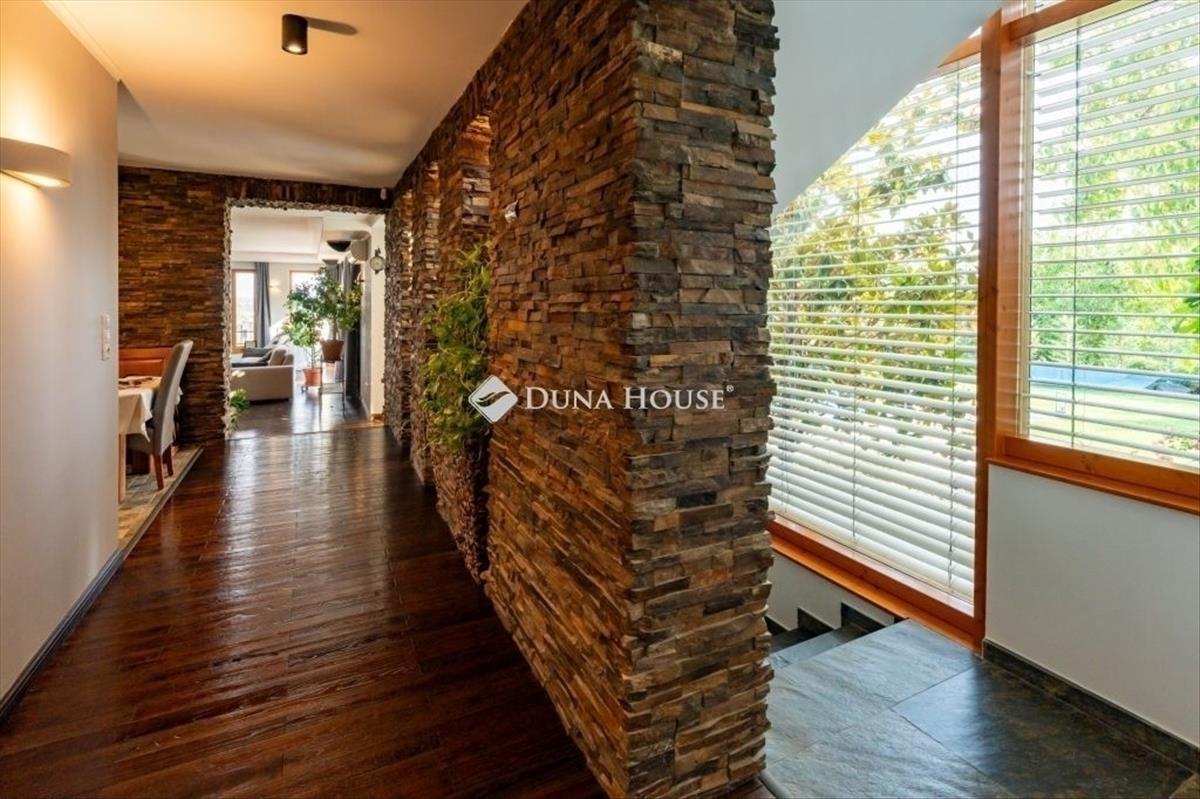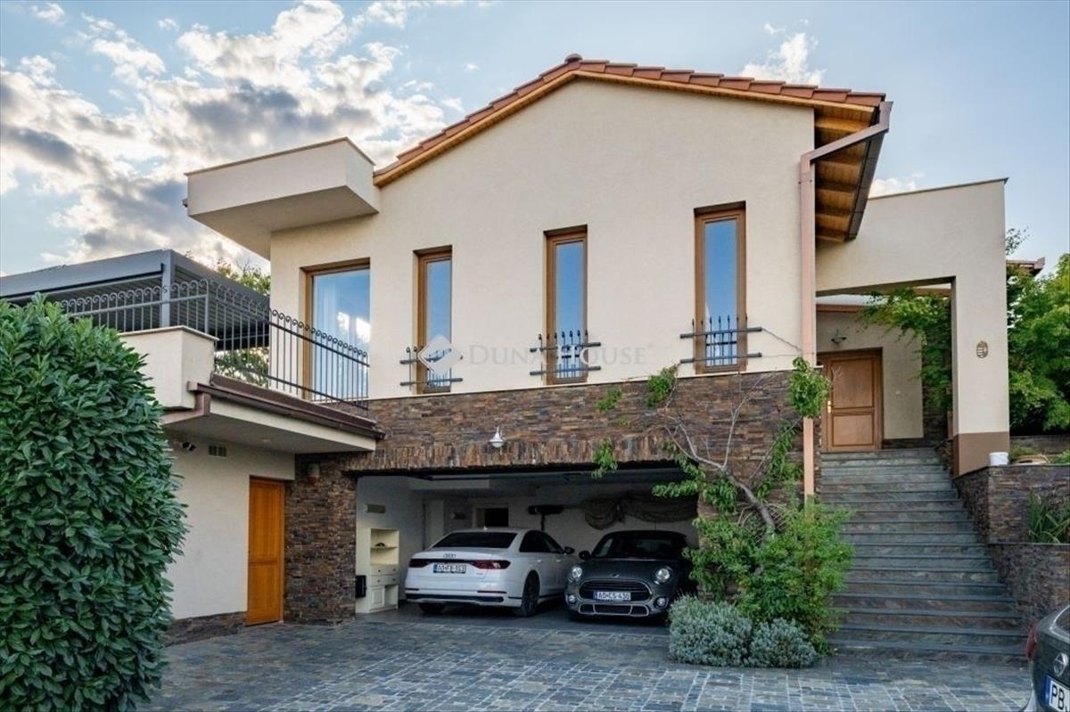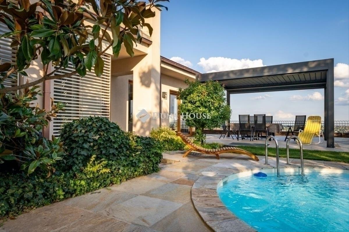 Eladó egy ritka gyöngyszem ingatlan, mely 2000 m2-es telken lévő családi otthon, 380 m² összterülettel büszkélkedhet, ideértve a fő lakóteret, amely 5 hálószobával, rendelkezik. Ezenkívül egy külön 55 m²-es lakást, egy 2 beállásos garázst, tárolókat, valamint egy több mint 100 m²-es, természetes kőburkolatú terasszal, pergolával, parkosított kerttel, halas tóval. Legyen szó akár nagyobb családokról, akár olyanokról, akik szeretik a vendégeiket luxus körülmények között fogadni, ez az ingatlan tökéletes választás lehet. Az elszeparált lakrész lehetőséget nyújt vendégek kényelmes elszállásolására vagy akár egy nagyobb korú gyermek önálló életterének kialakítására is. Az ingatlan nem csupán a luxus szolgáltatásaival, hanem esztétikai értékeivel is kiemelkedik. a magas minőségű anyagok felhasználása és a részletekre való odafigyelés egy olyan otthont teremt, amely minden igényt kielégít. a panorámás kilátás pedig még inkább emeli az ingatlan értékét, hiszen minden napja egy festménybe illő látvánnyal kezdődhet. a kényelem és a luxus jegyében épült ingatlanban minden megtalálható, amire csak vágyhat: egy gyönyörűen kialakított medence, szauna, pezsgőfürdő, hangulatos teraszok, és természetesen a téli estéket kellemessé tevő kandalló. a napfényes terek gondoskodnak arról, hogy otthona mindig világos és meleg legyen, míg a modern klímaberendezés a nyári napokat is kellemessé teszi. Összefoglalva, ez az ingatlan nem csupán egy lakóhely, hanem egy olyan befektetés, amely értékálló marad a jövőben is. Ha Ön egy olyan otthont keres, ahol a luxus, a kényelem és a lélegzetelállító kilátás mindennapos, ne keressen tovább. Fedezze fel, mit kínál ez a különleges ingatlan és tegyen egy lépést álmai otthona felé.