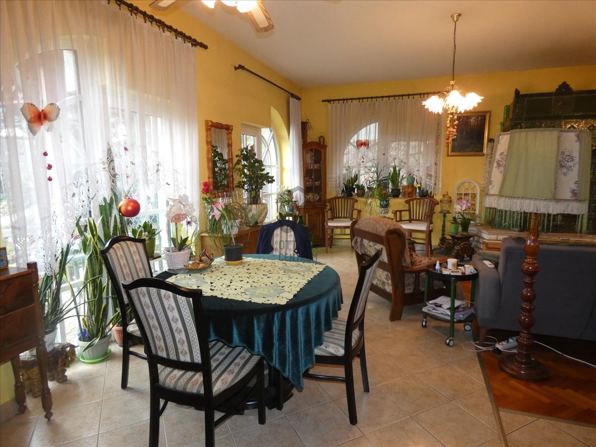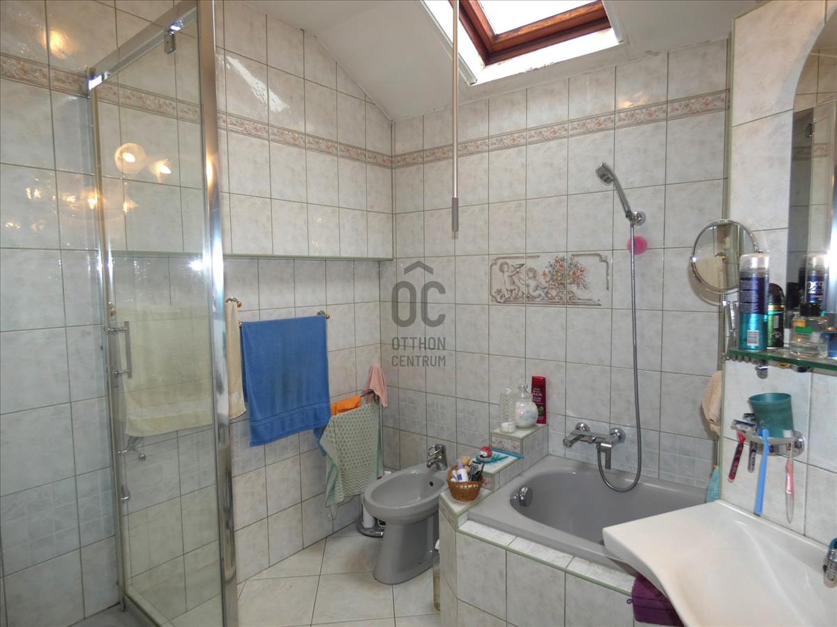 Pécs, ürögi rész elején eladó egy három szintes 2 generáció együttélésére alkalmas családi ház. a ház földszinti részén helyezkedik el a ház gépészeti berendezése, kamra, boltíves pince, egy beállásos garázs és egy vizes blokk zuhanyzóval. a felső szinten lévő lakások megközelíthetők a belső lépcsőházon keresztül vagy a külső lépcsősoron is. Az első szinten lévő lakás konyha, étkező kis nappali, hálószoba kialakítású. Itt kapott még helyet egy vendégszoba és két fürdőszoba és mosdó is. Mindkét szobához kapcsolódik terasz, amelyről szép kilátás nyílik a szembe lévő erdős részre. a közös előtérből egy lépcső vezet fel a 2. Szinten lévő lakásba. Itt egy hatalmas nappaliba léphetünk be, amelynek benapozottságáról a nagy ablakok gondoskodnak. a nappaliban lévő kandalló nem csak hangulatot, de kellemes meleget is ad. a konyha átadó ablakon keresztül kapcsolódik az étkezőhöz. Félemeleti részen helyezkedik el a két hálószoba( egyik még befejezésre vár) gardrób, fürdőszoba és mosdó.A ház gépészete kiváló, fűtése gázcirkó, a hőleadás padló és falfűtéssel történik. 6 Kw-os napelem, napkollektor, központi porszívó szolgálja a lakók kényelmét. a telken fúrt kút is található. a telek teraszos kialakítású, pergola - kiülő is található. a telek utcafronti részén több gépkocsi beállására is van lehetőség. FIX 3% lakáshitelre megvehető