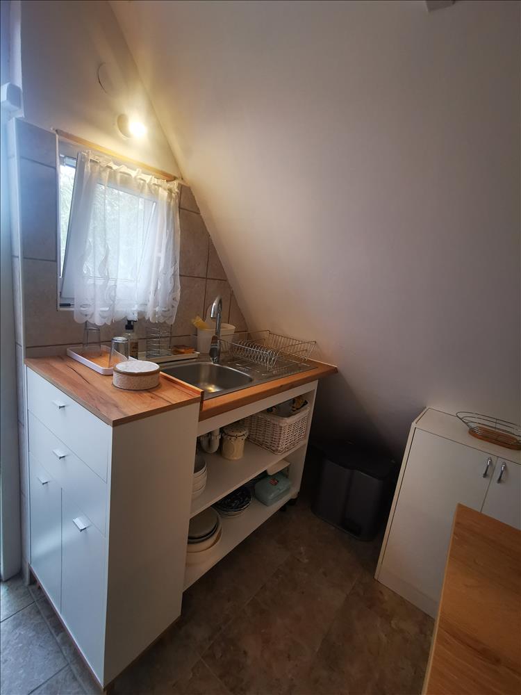 Teljesen sík telken, 1980-as években, téglából épült kis ház, lakóház minősítéssel (támogatott kölcsönök, támogatások felvehetőek), per és tehermentes, egy tulajdonostól. Teljes közműves. (Áram, víz, csatorna, gáz)A tetőtérben 2024-ben beépített, 10-es kőzetgyapottal szigetelt tető alatt, különbejáratú, kis "kapszula-lakás" van, egy szoba + felszerelt minikonyha és fürdő található benne. a mini fürdőben Ravak kád, wc, mosdó, mosógép. Saját villanyórával és vízórával rendelkezik. (Költségmegosztók). Fűtés elektromos olajradiátorral. Egy kis félemeleti terasz tartozik hozzá, szép kilátással.