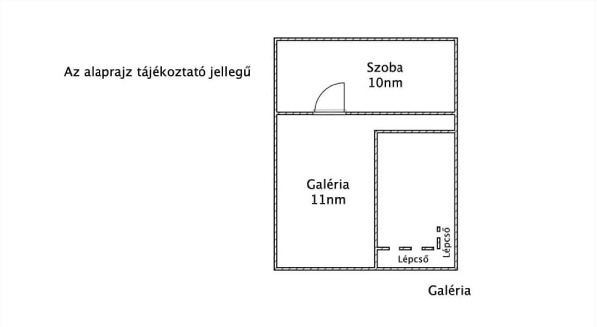 - Galéria (11 m2), szoba (10 m2), lépcsőház