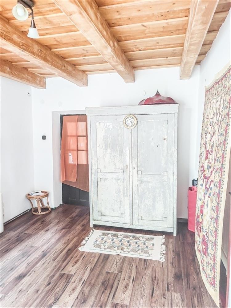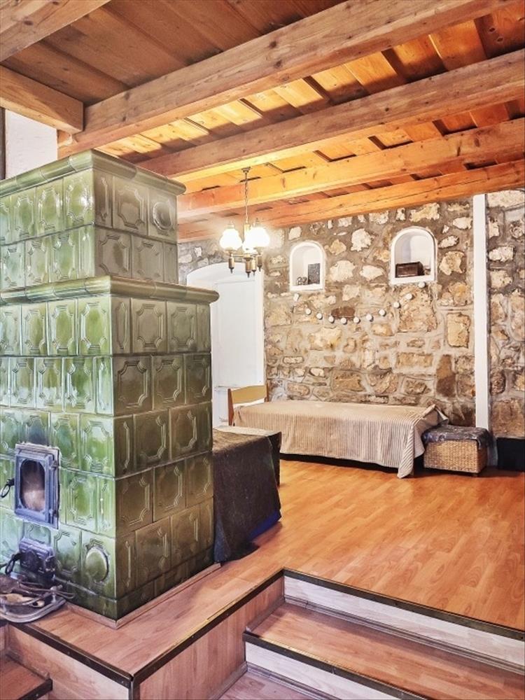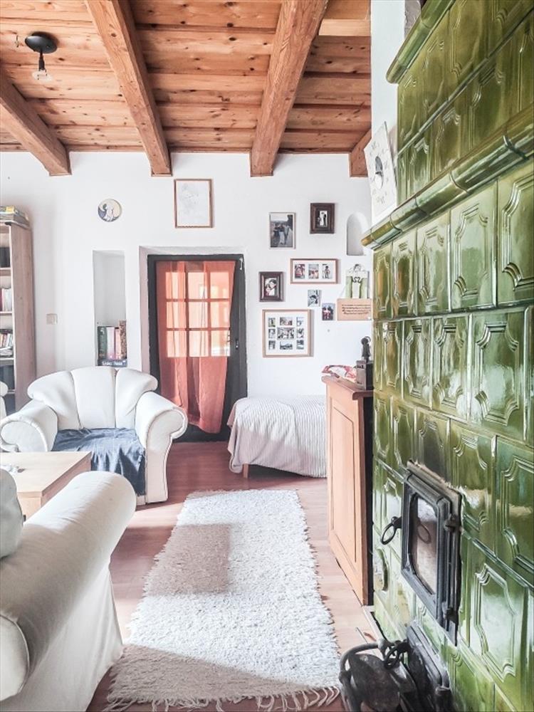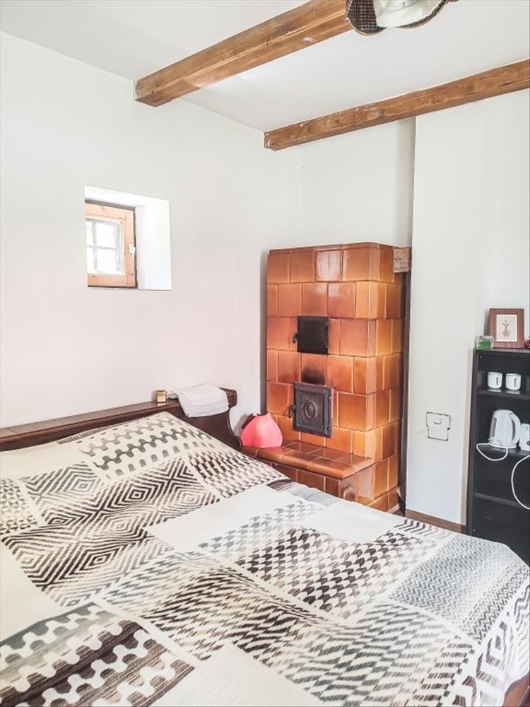 - jó méretű, világos előszoba, konyha gyönyürű csikótűzhellyel (16 m2), konyhából nyíló pince (16 m2), fürdőszoba, hálószoba cserépkályhával, hatalmas, látszógerendás nappali, melyben szintén egy cserépkályha található (40 m2), hálószoba.