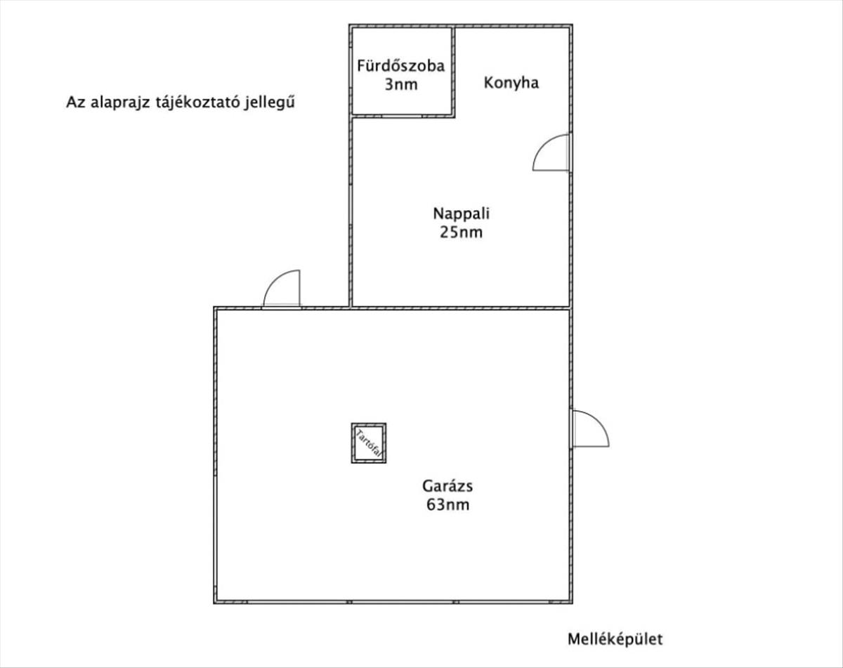 - Konyha-nappali (25 m2), garázs ( 63 m2)